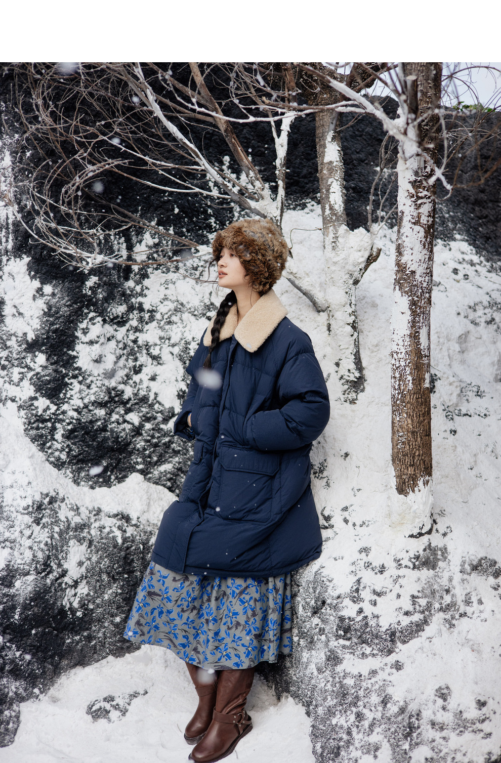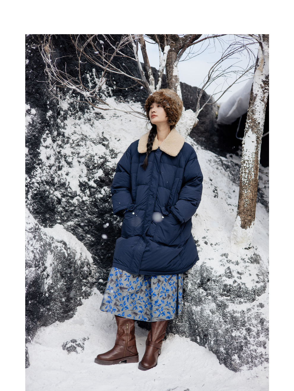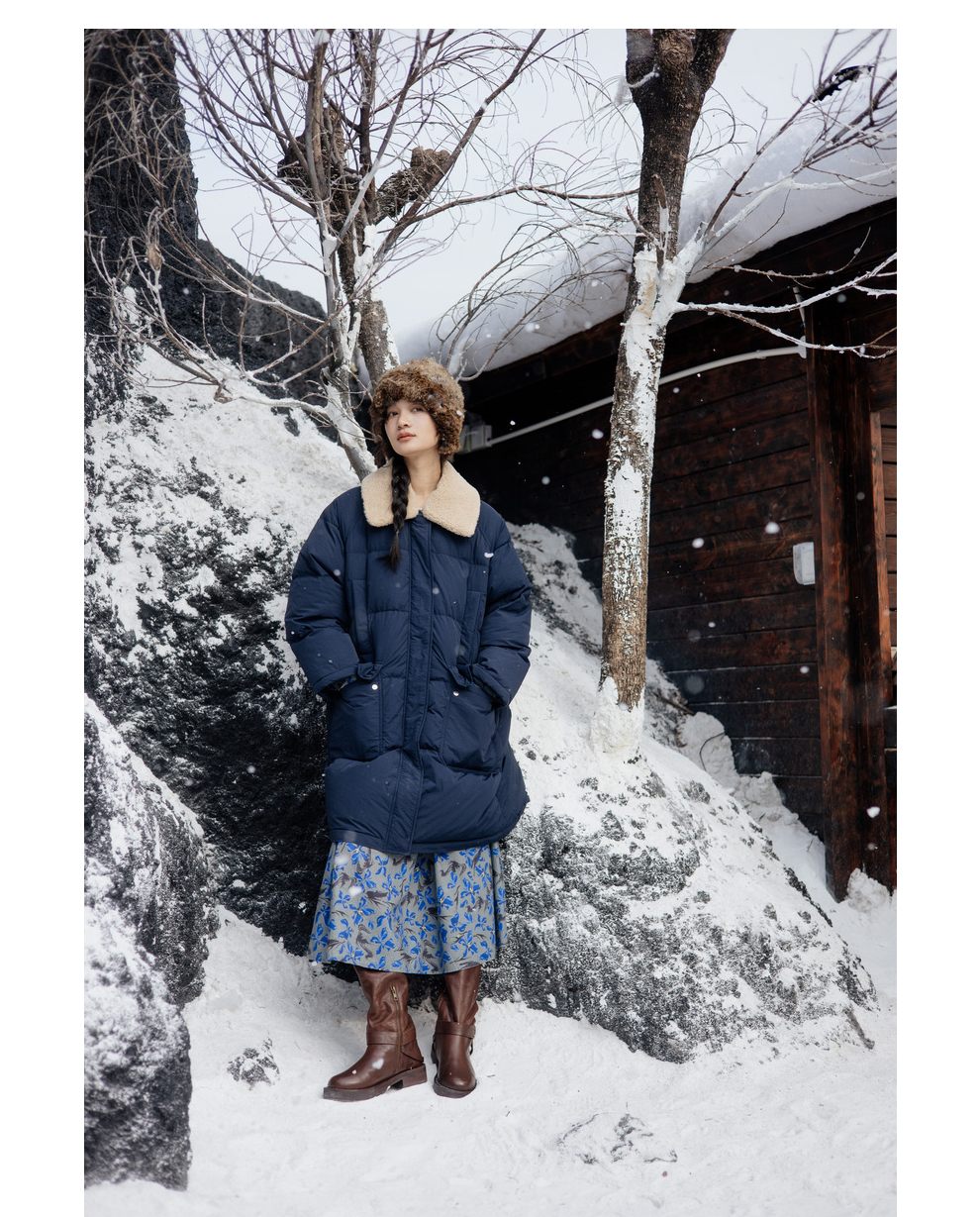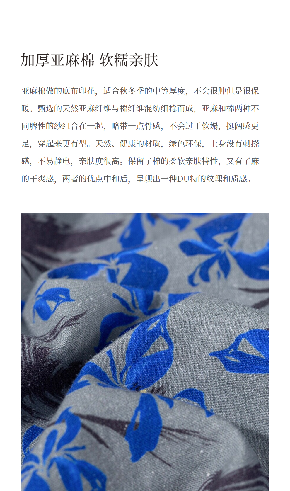 绽放旅行女装852朵/冬季加厚亚麻棉原创印花圆领A字大摆连衣裙