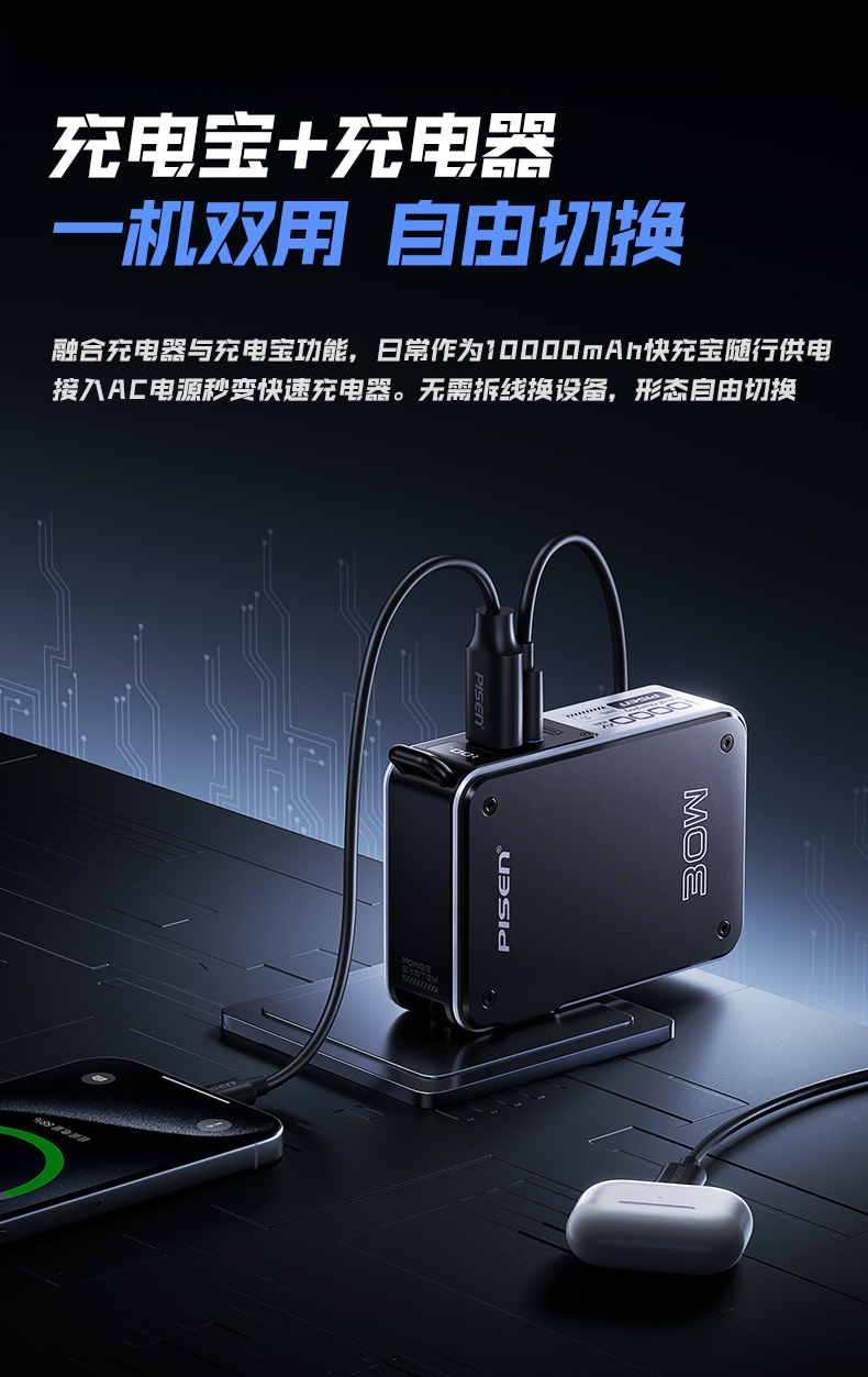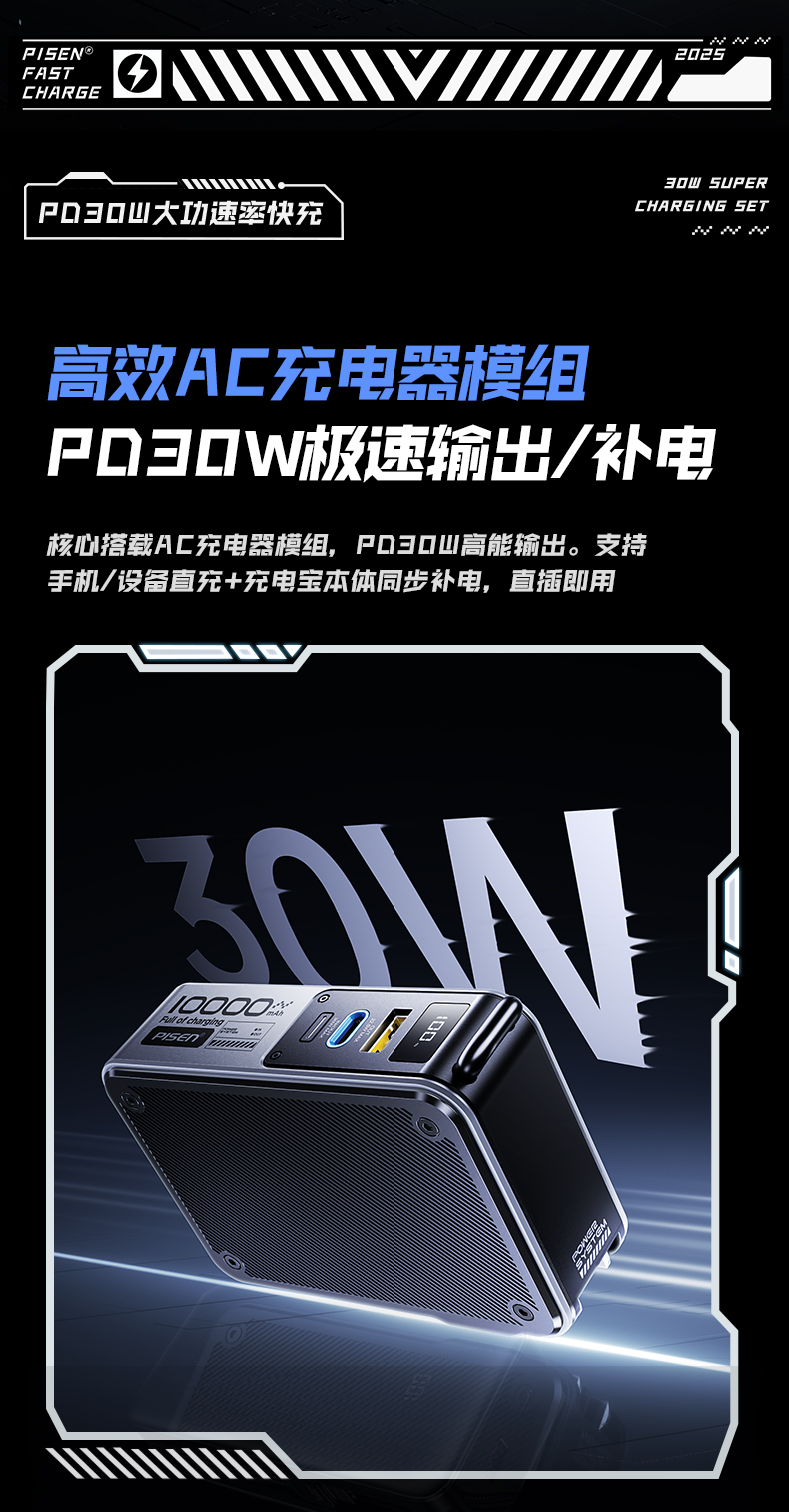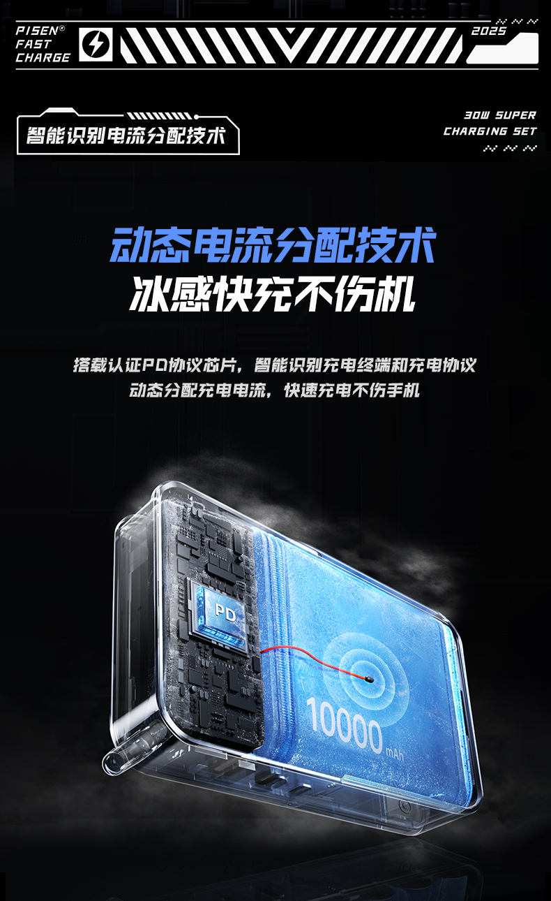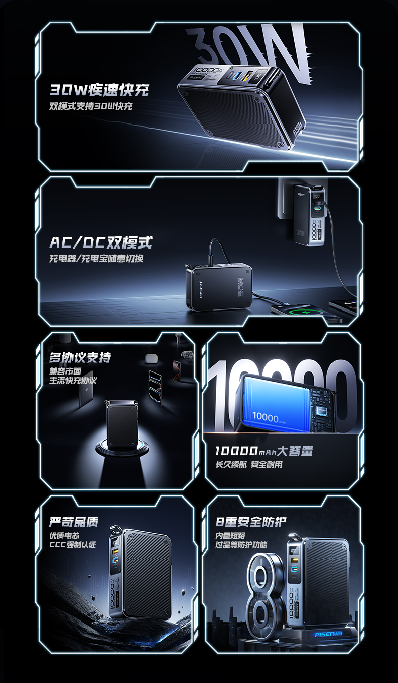 品胜 30W便携挂绳电霸10000毫安充电宝 支持苹果/华为/荣耀/小米等设备快充移动电源