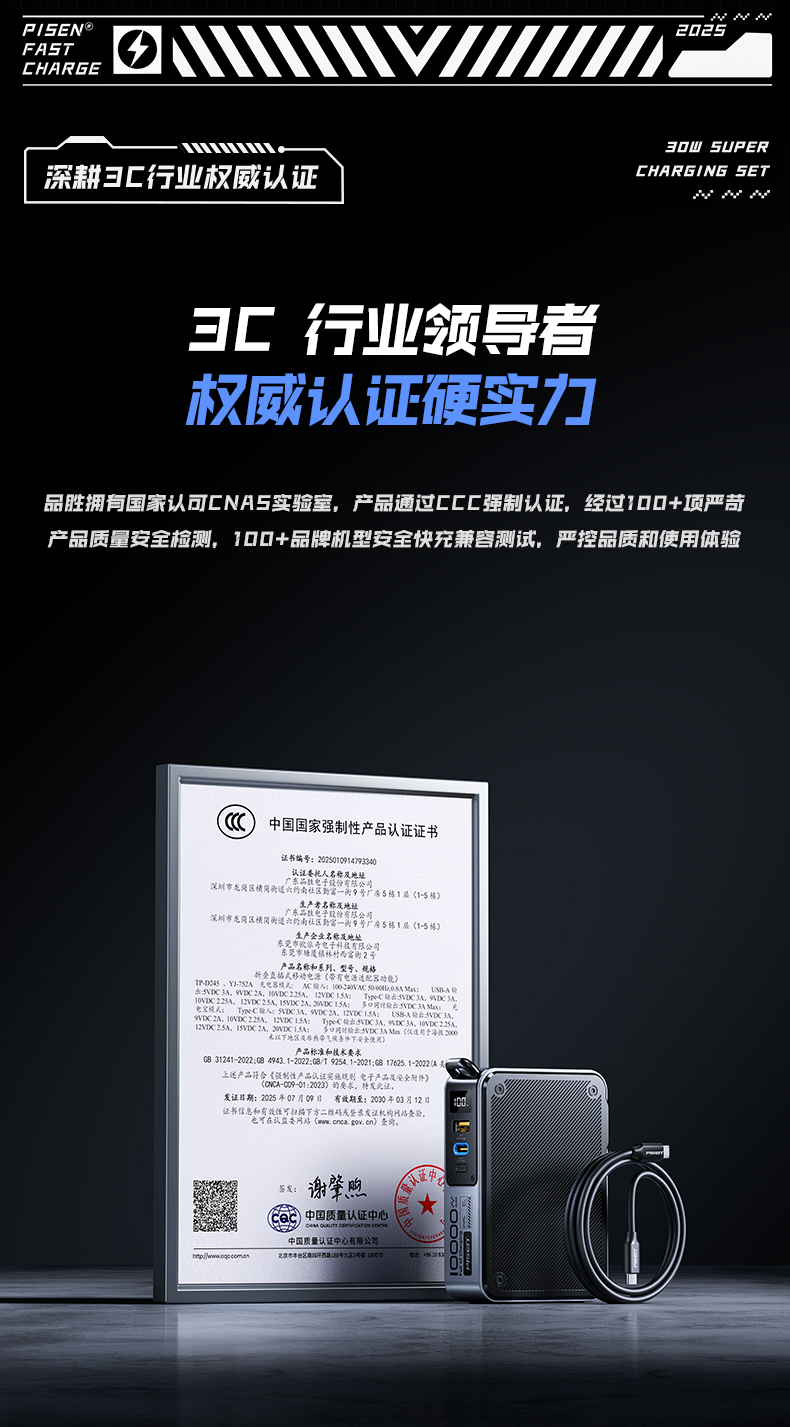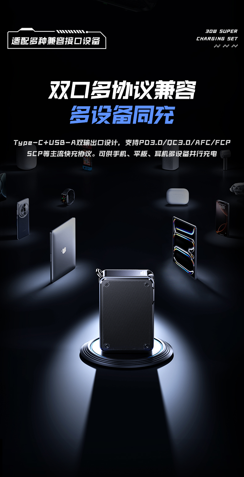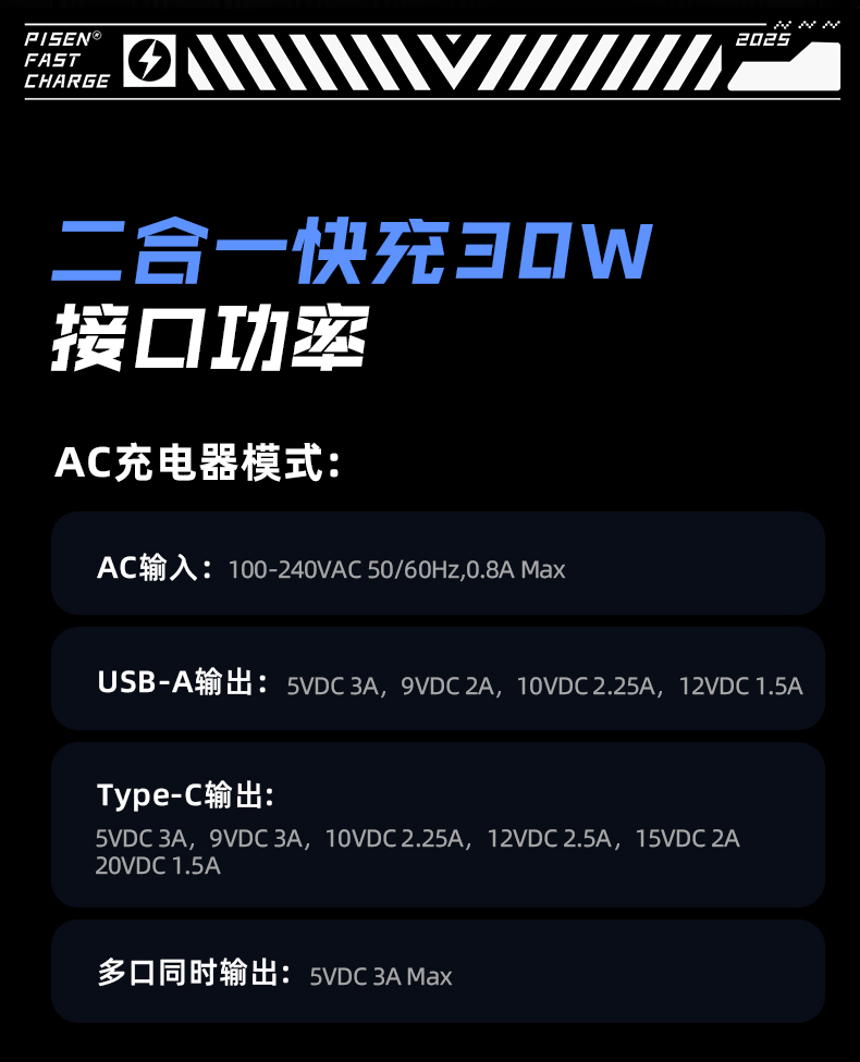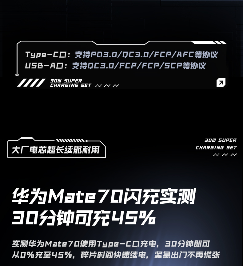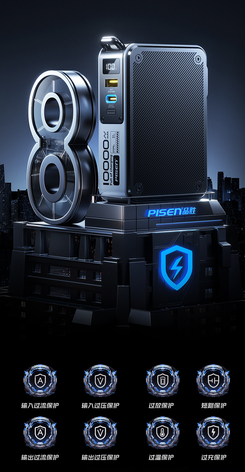 品胜 30W便携挂绳电霸10000毫安充电宝 支持苹果/华为/荣耀/小米等设备快充移动电源