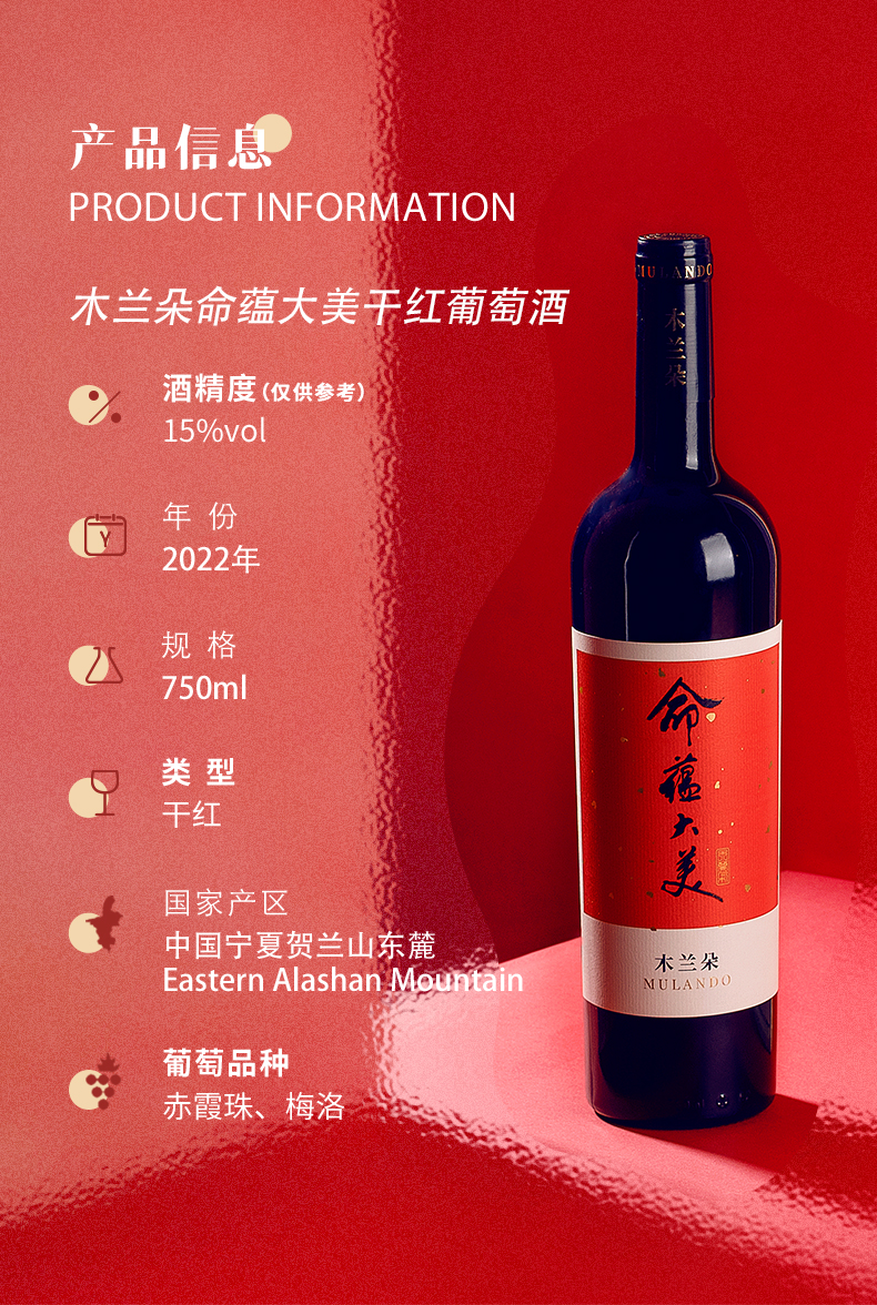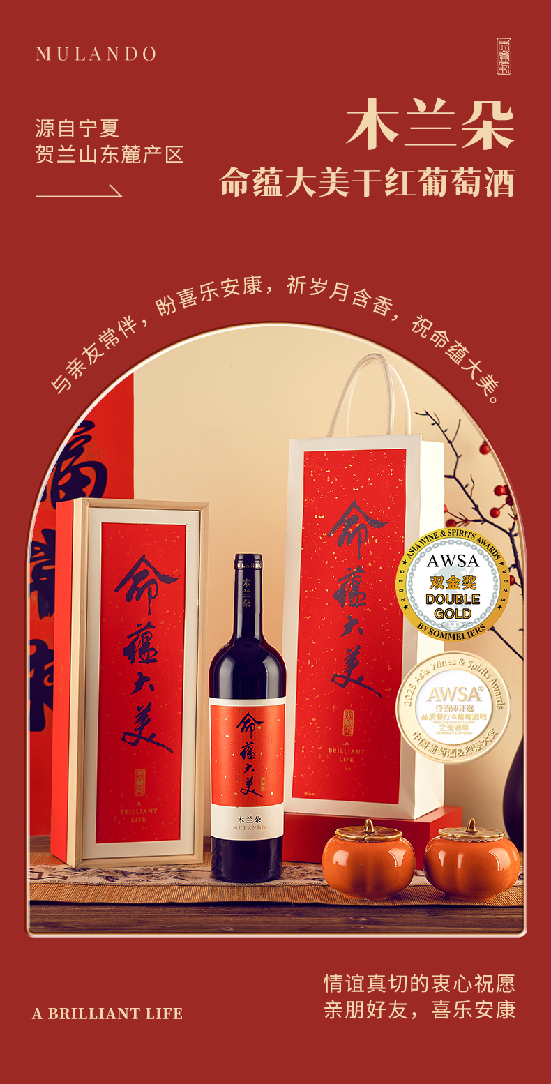 木兰朵命蕴大美干红葡萄酒宁夏贺兰山东麓国产赤霞珠红酒礼盒装