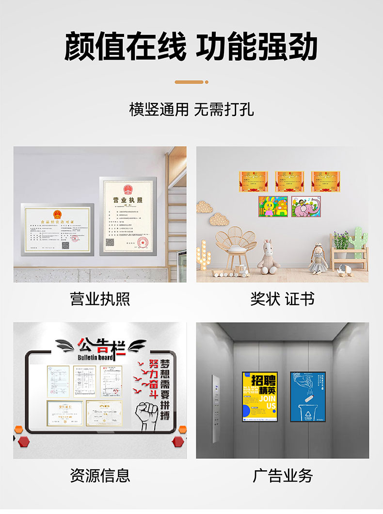 奖状贴墙神器A3/A4透明磁性展示贴营业执照儿童画框挂墙免打孔磁吸相框/个