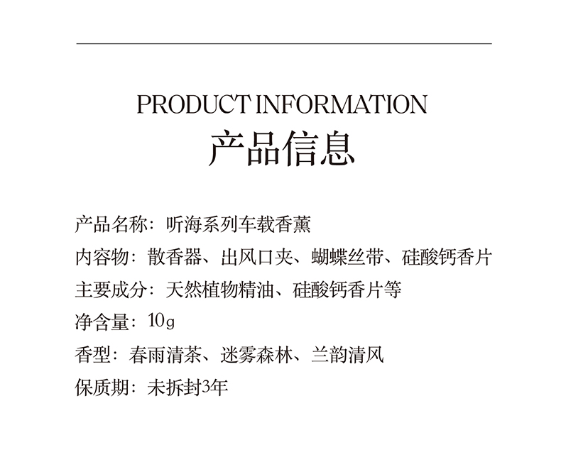 【文怡之选】宋朝 听海系列车载香薰 出风口/挂饰均可用 春雨清茶 迷雾森林 兰韵清风 三种可选