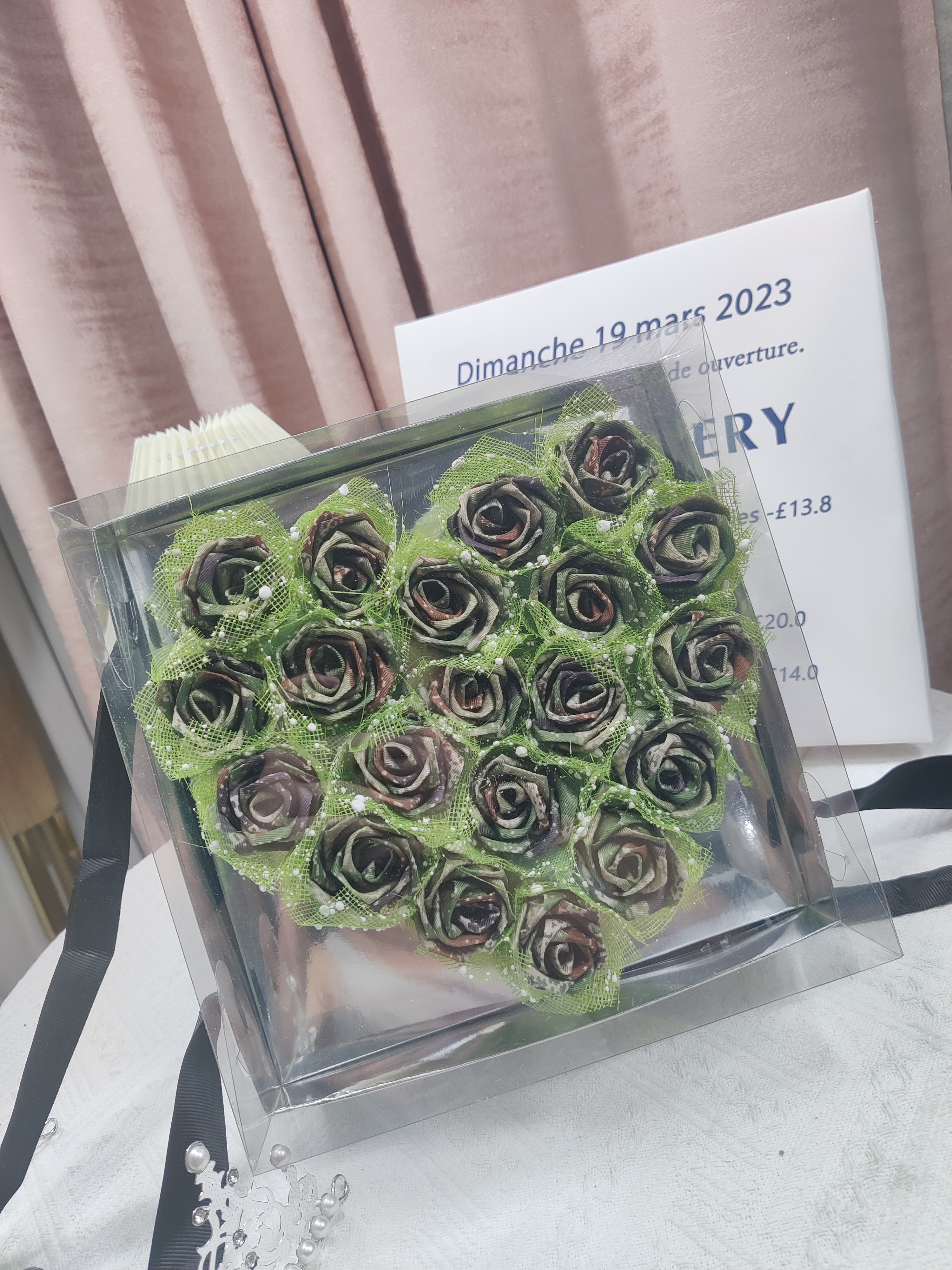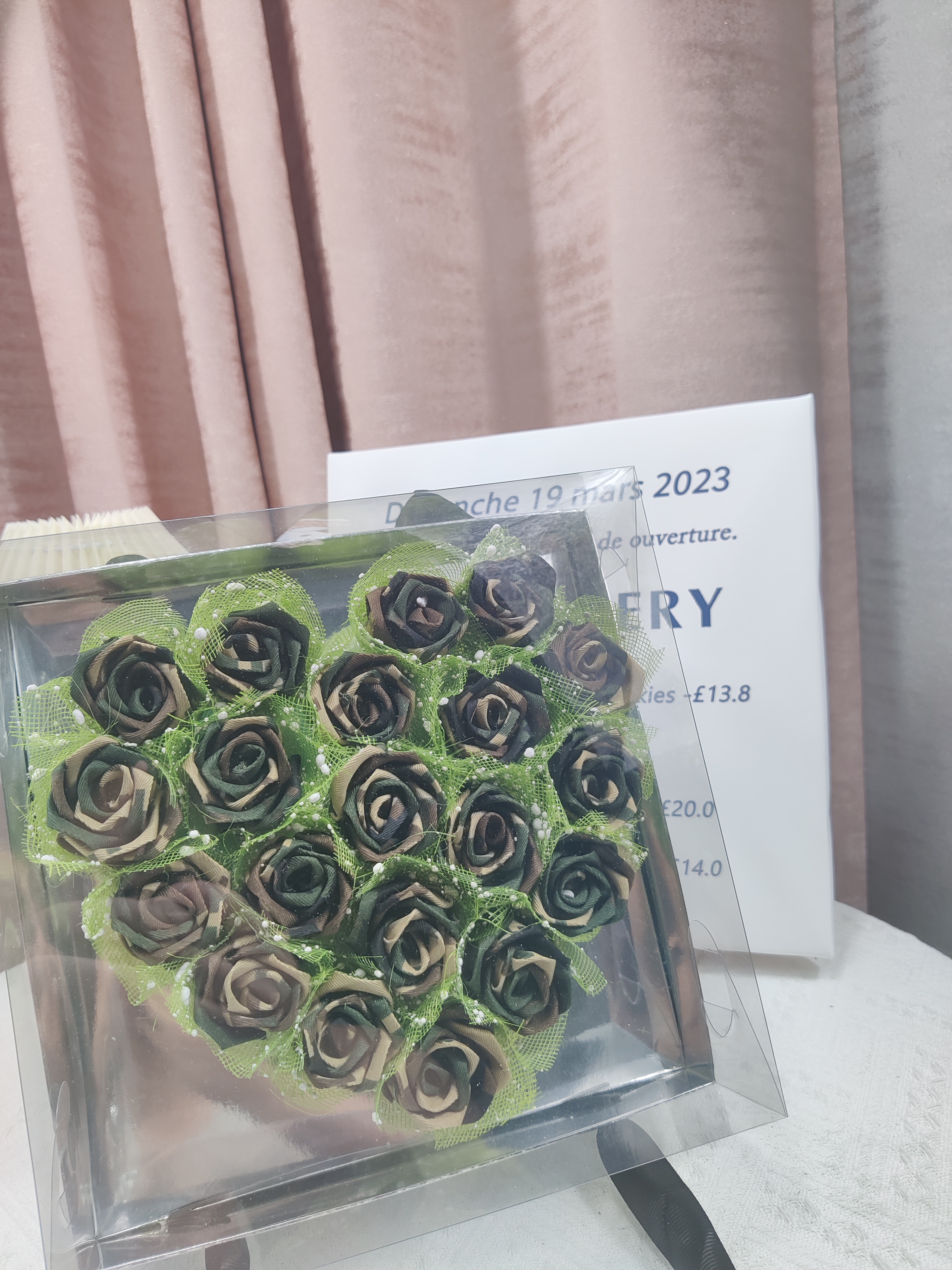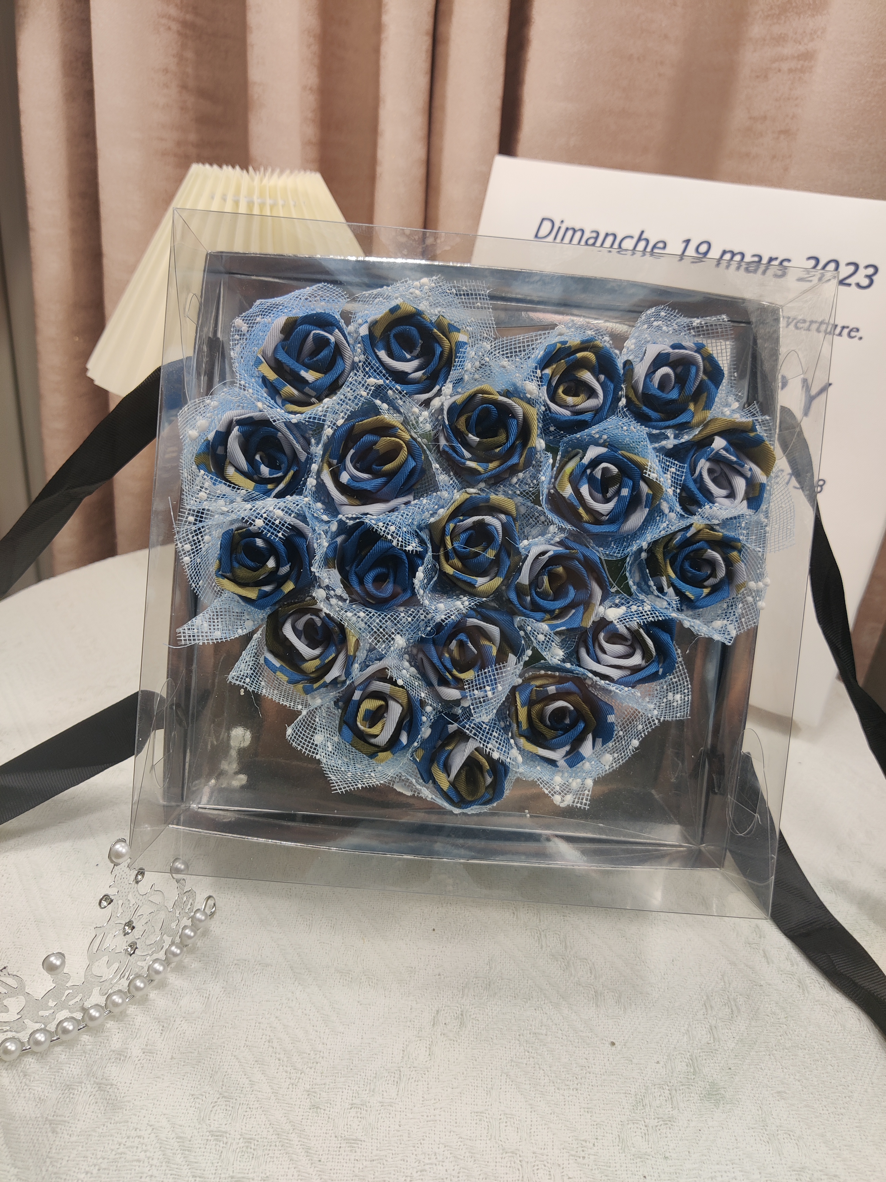 3、玫瑰花束是迷彩布手工制作,非质量问题不支持无理由退换货,手工制作不易, 快递过程中肉眼可见损坏严重,直接拒签,运费很高,希望大家理解。花是纯手工的,每一朵都不同,拆开后不支持退货,不支持无理由退换货。