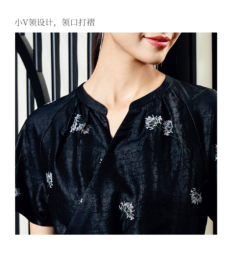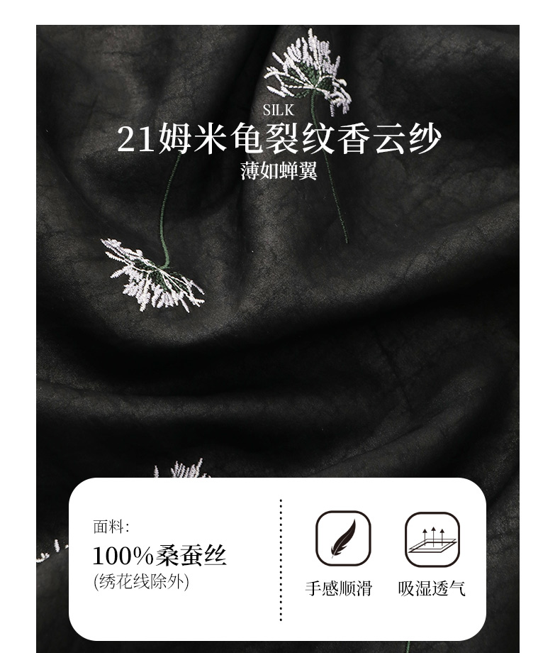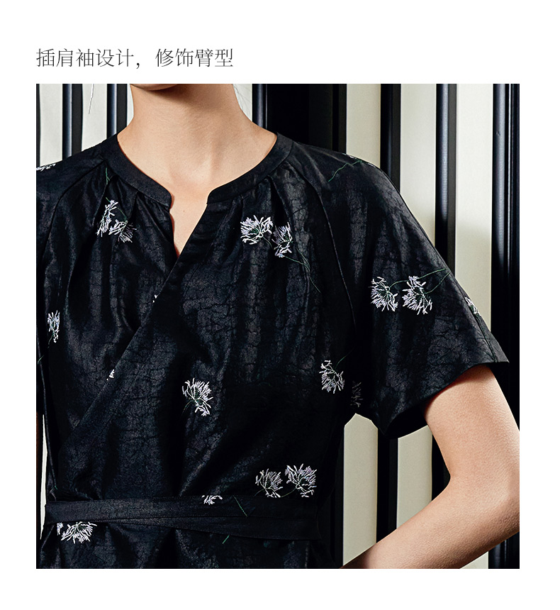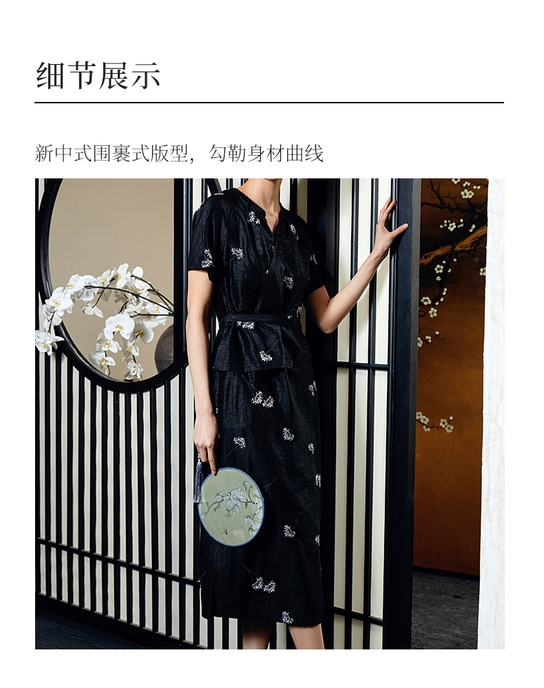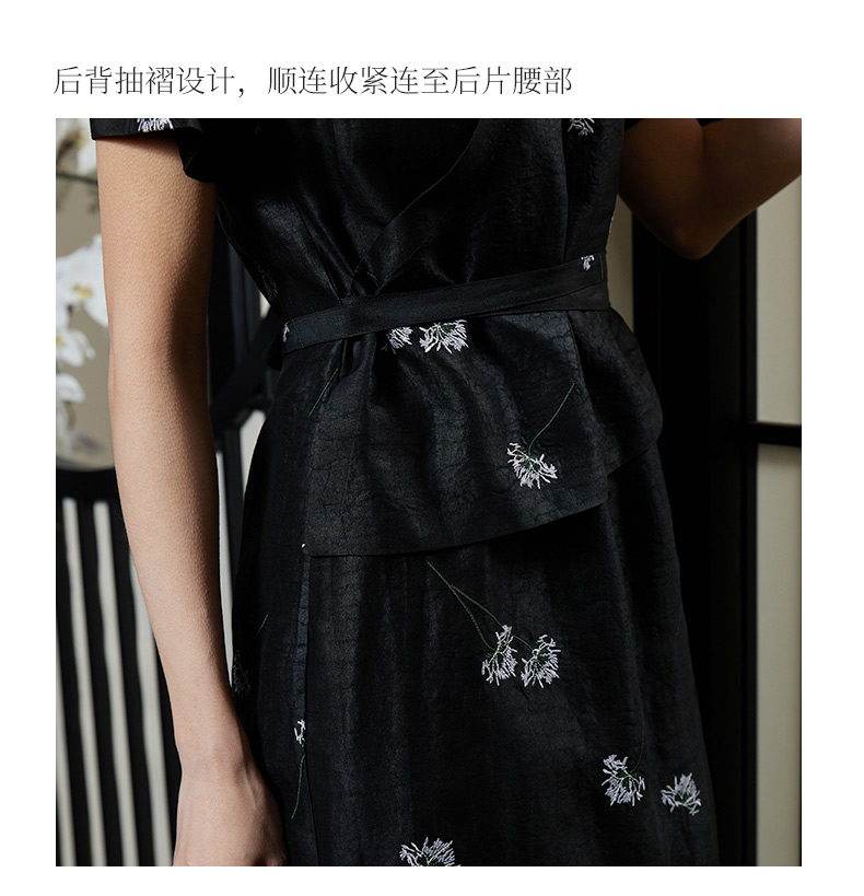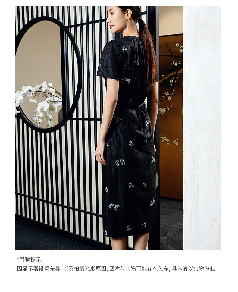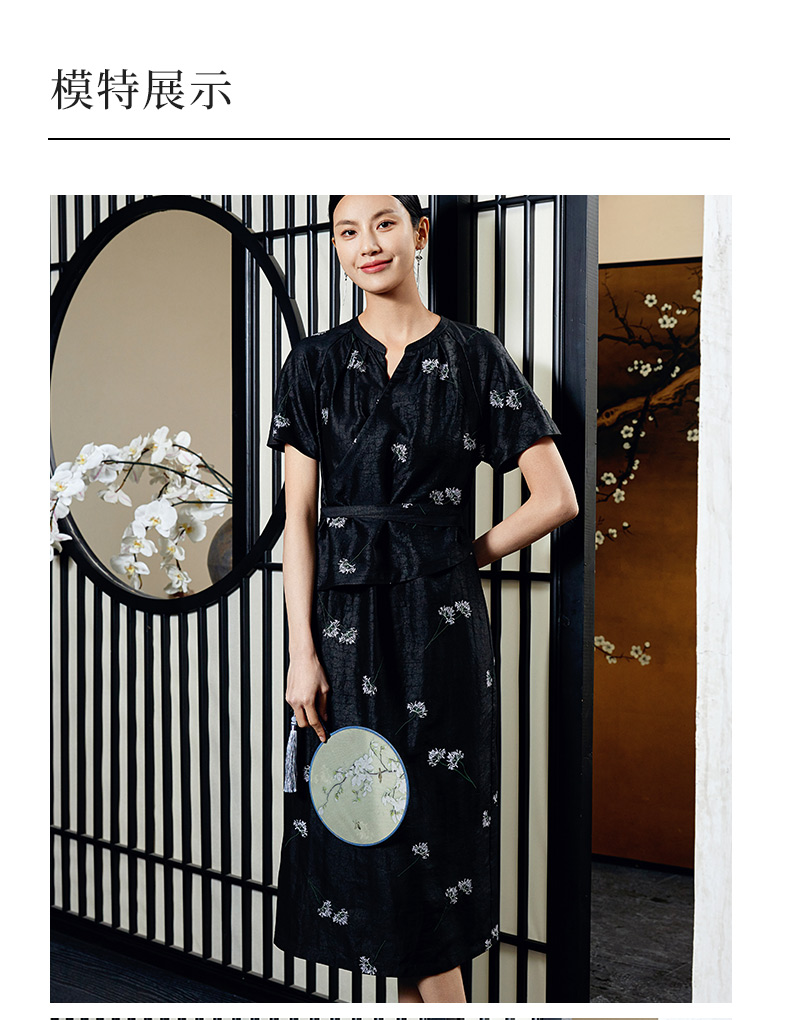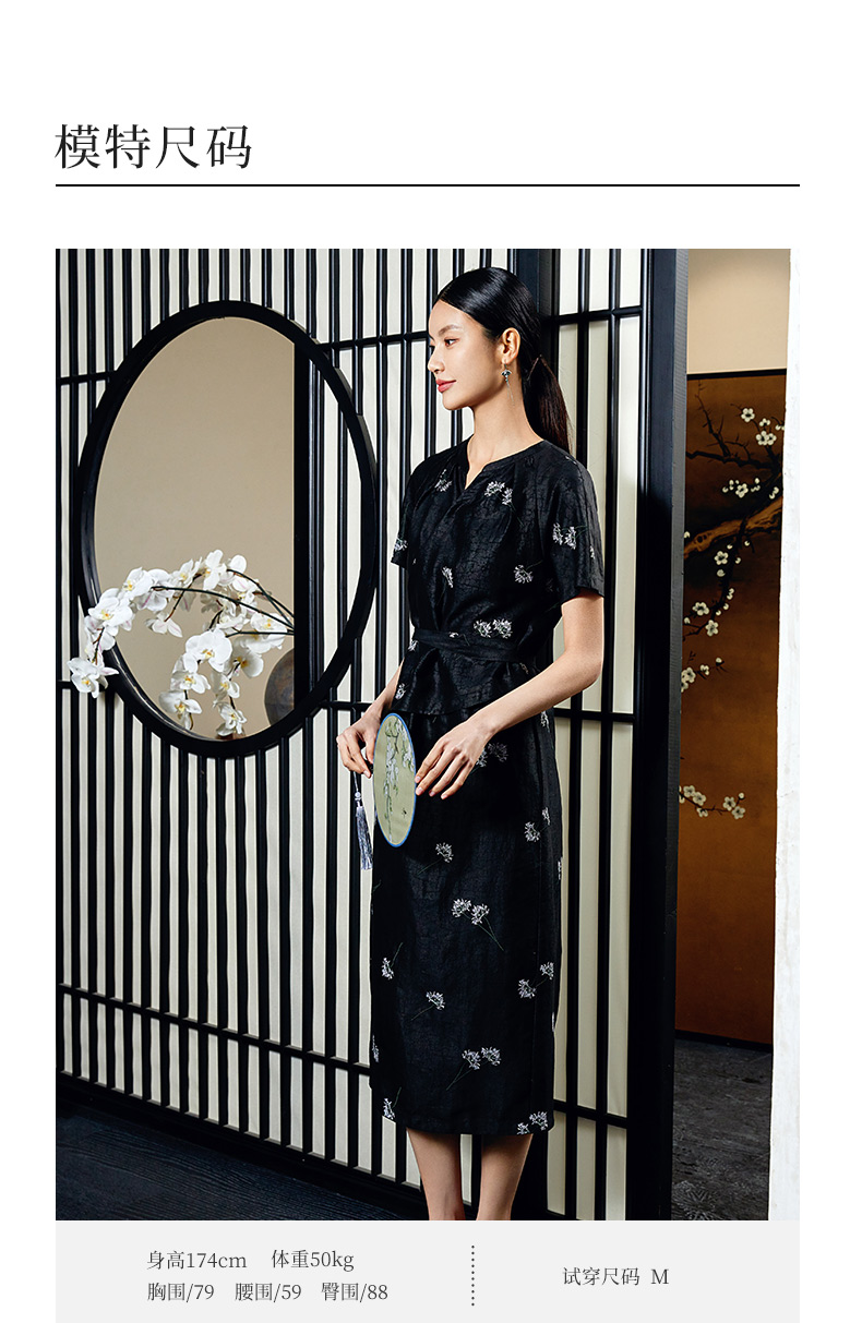 玳莎斜襟式香云纱连衣裙2024夏季新款V领新中式假两件收腰中长裙 EB35101