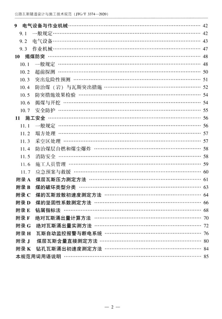 JTG/T 3374 —2020公路瓦斯隧道设计与施工技术规范