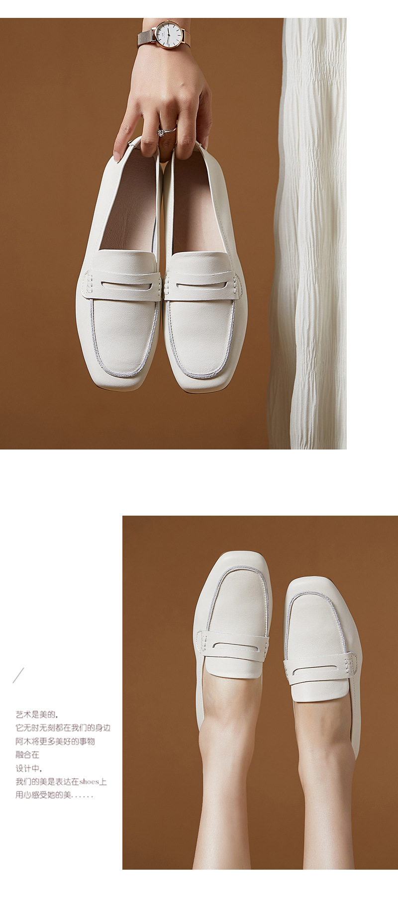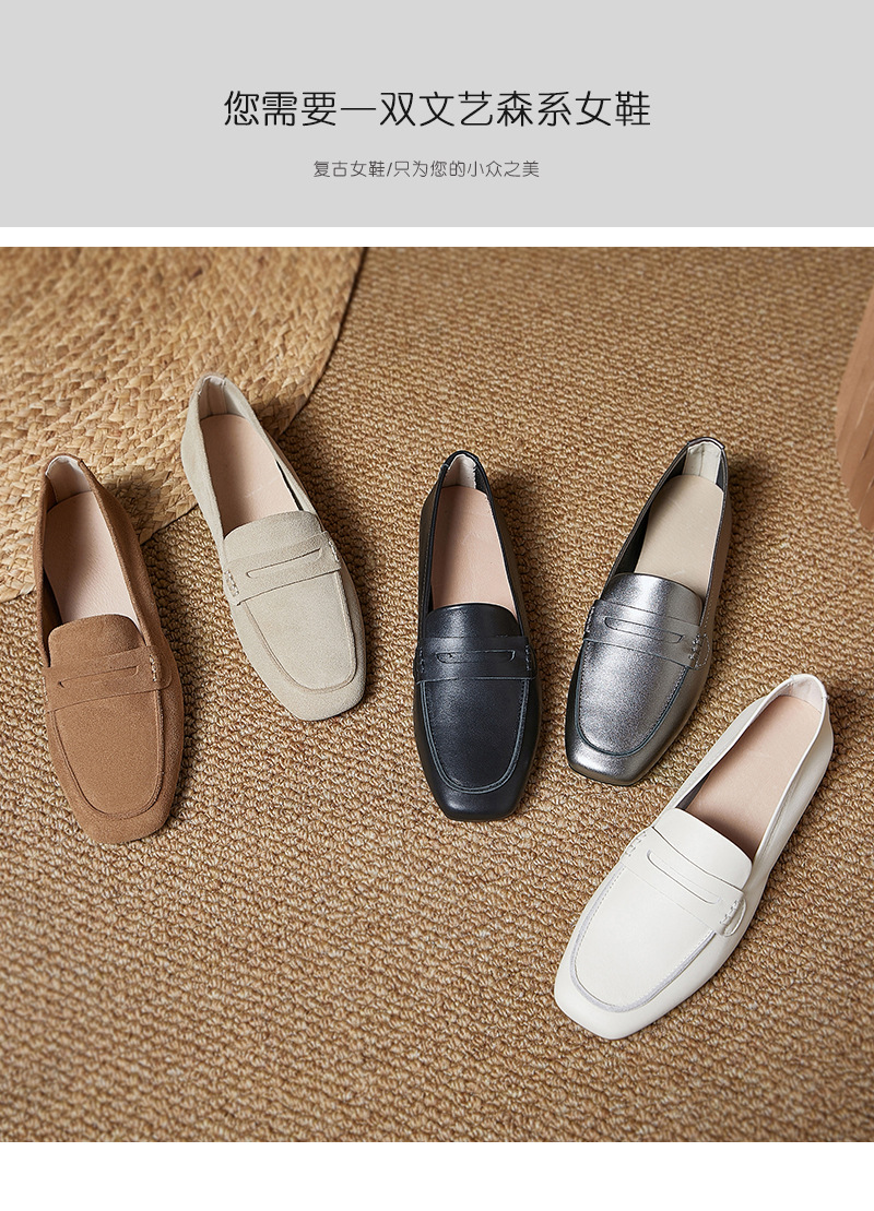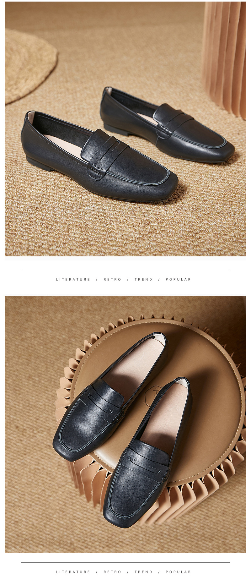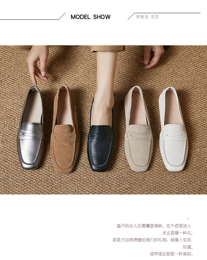 2025真皮女单鞋新款乐福鞋方头软底软皮黑色百搭通勤工作鞋女鞋!