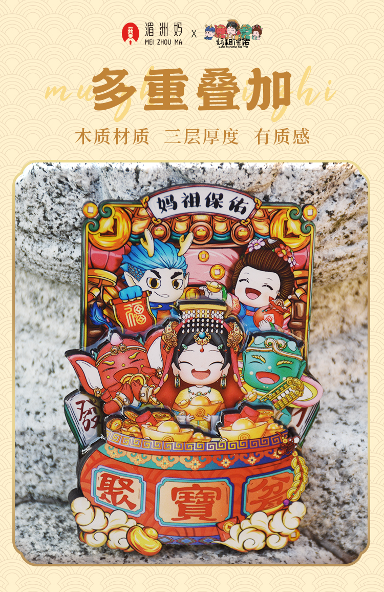 湄洲妈妈祖冰箱贴聚宝盆木质冰箱贴文化创意装饰