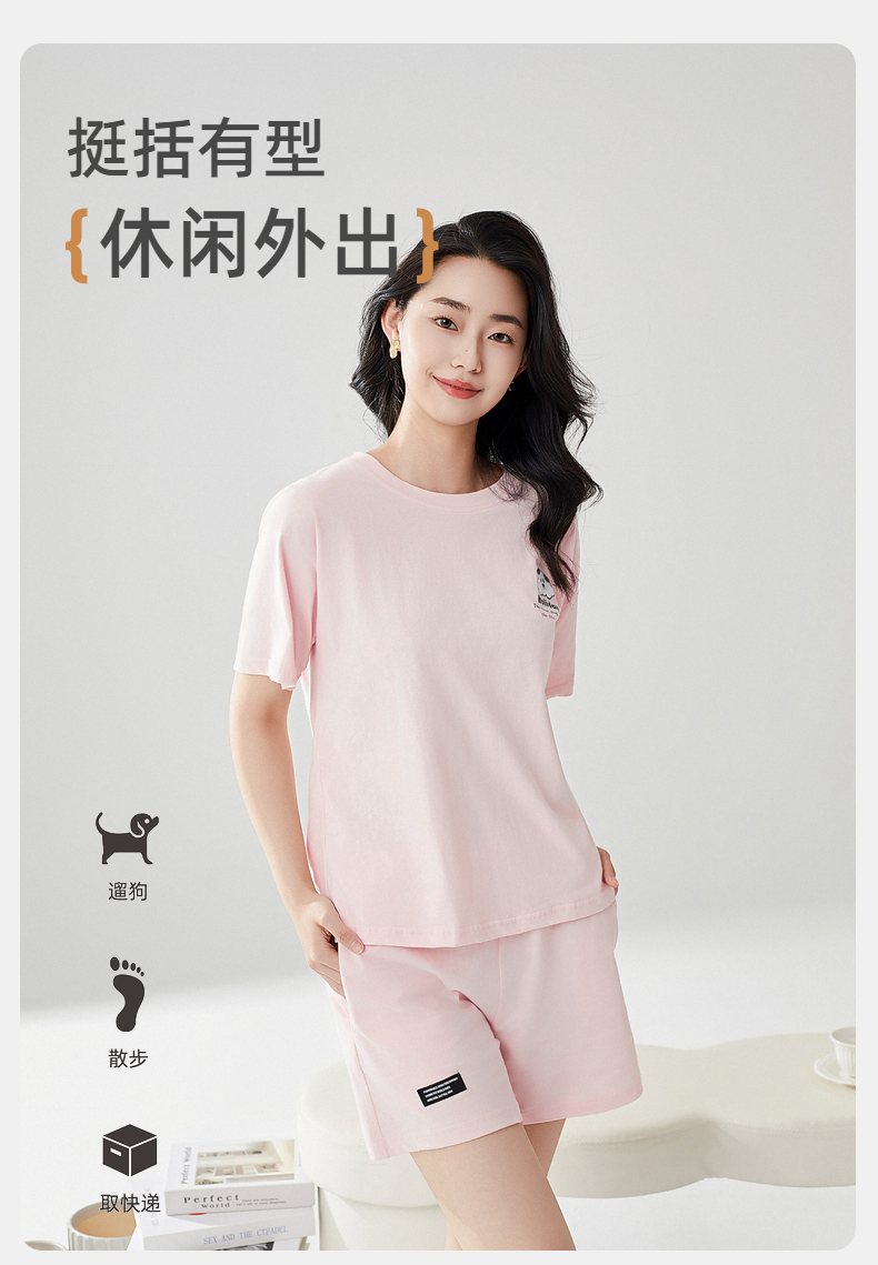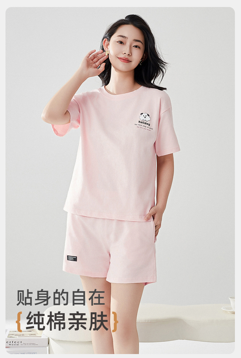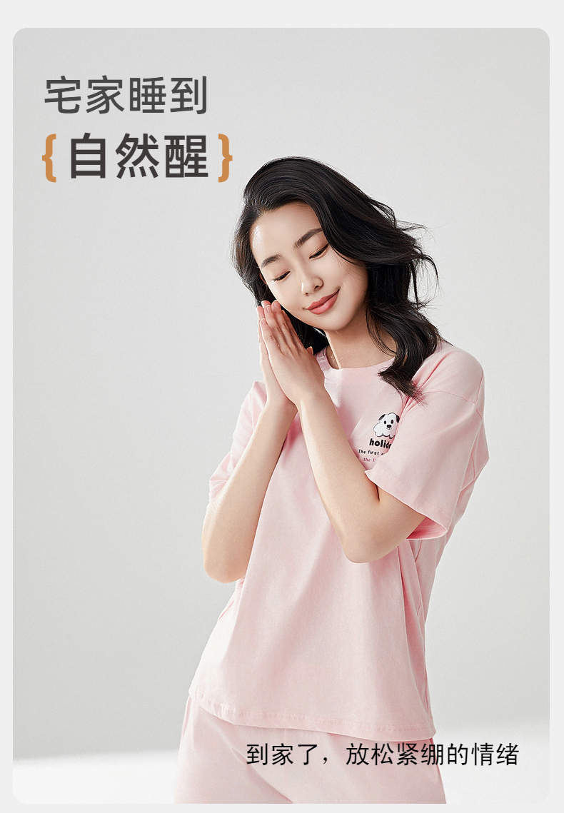雅黛俪睡衣女款纯棉全棉夏季薄款短袖短裤家居服套装2025新款外穿
