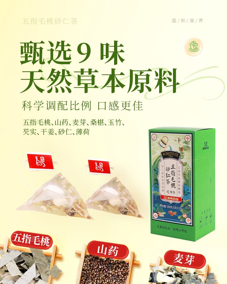 康美五指毛桃砂仁茶5g*20袋/盒 养生茶饮代泡茶