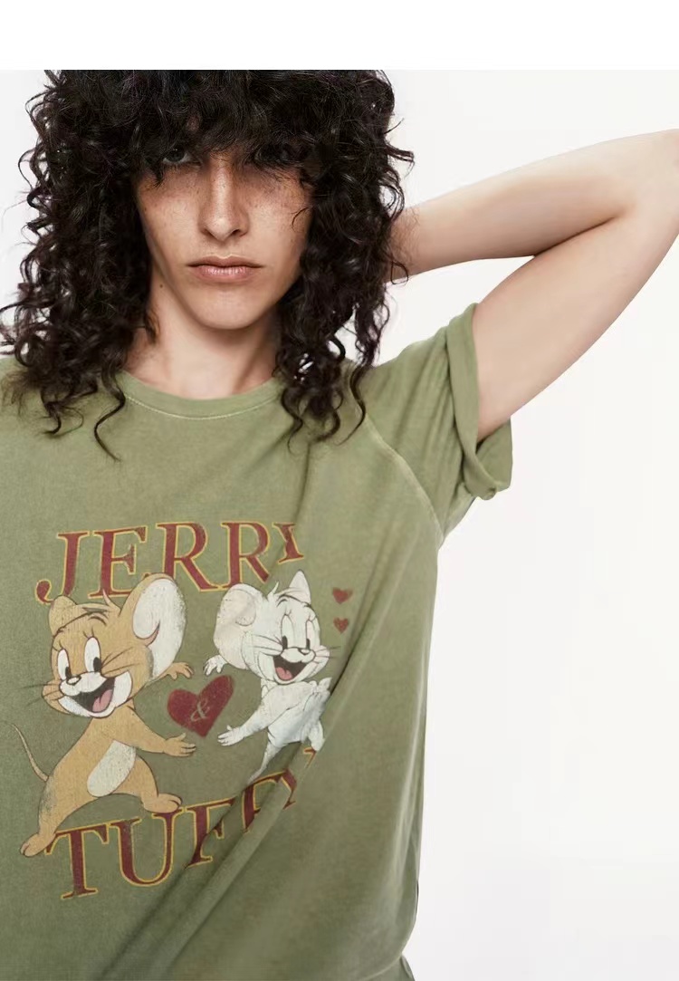 2026新款短袖T恤新品猫和老鼠联名系列斑驳洗旧棉质