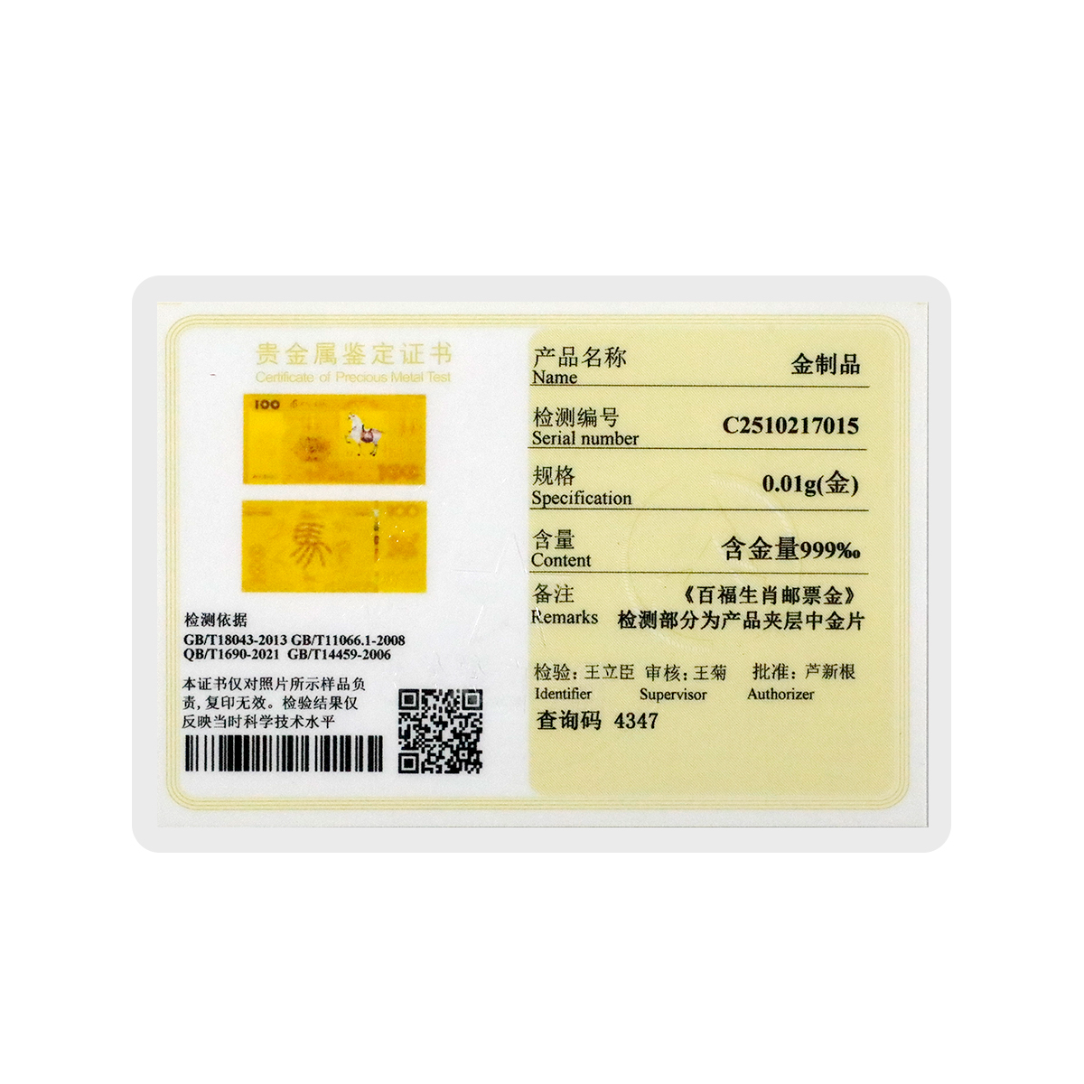 注意事项 :1、带信封包装卡;2、金价涨跌幅度较大,下单后我们会第一时间订货,除质量问题外,不接受退货退款,望各位理解,谢谢!