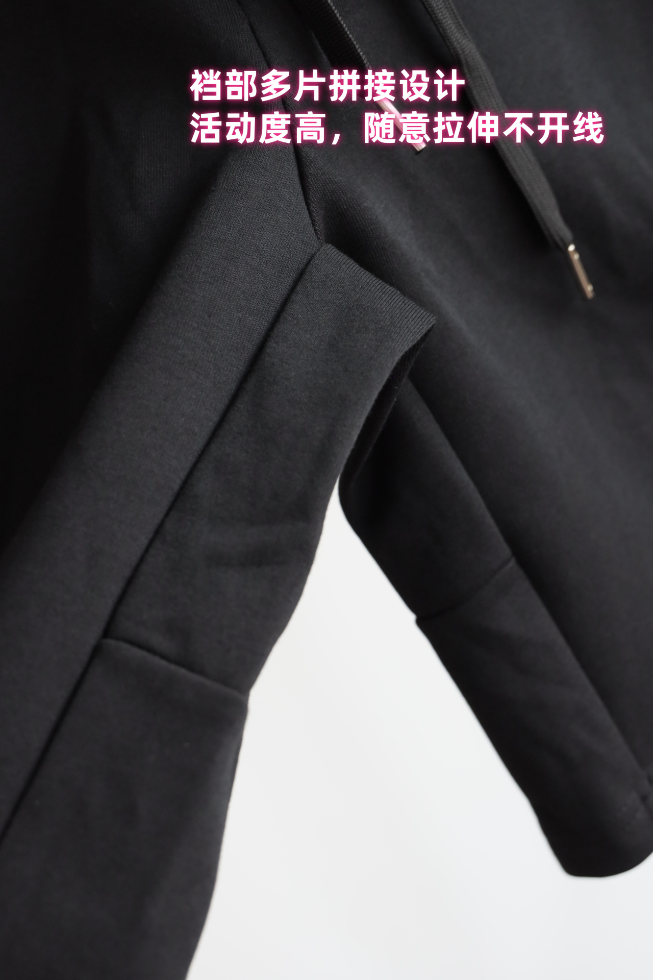 腰围抽绳可调节松紧,腰围弹力不大,只能拉伸3~5cm