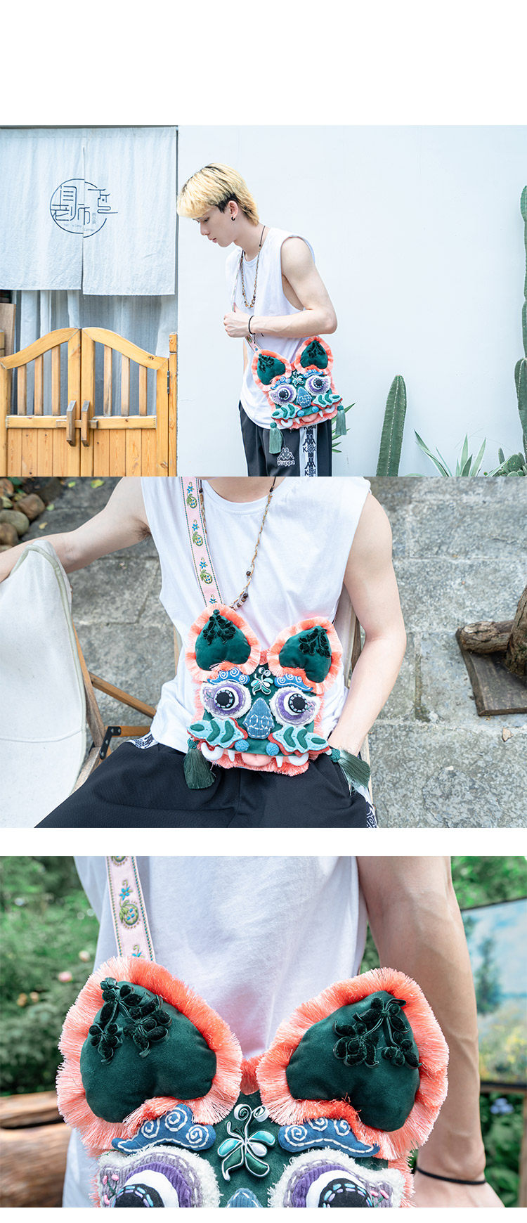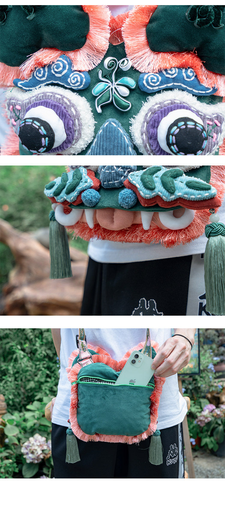【1.21-2.6停发】芽小七原创手作国潮系列虎头情侣斜挎包手工放手机包包龙年醒狮帽