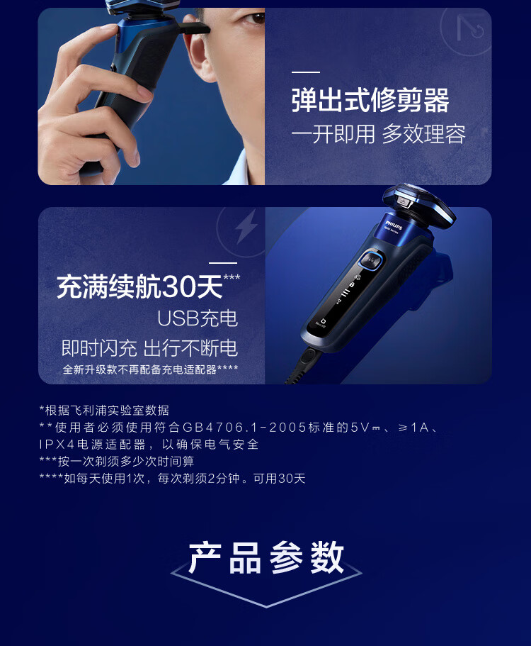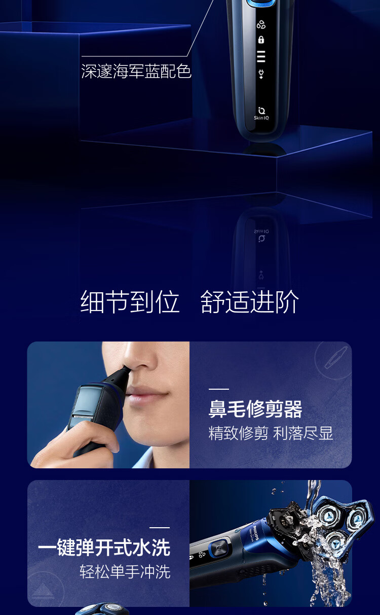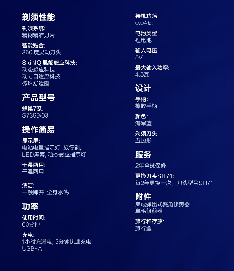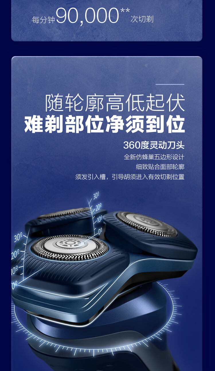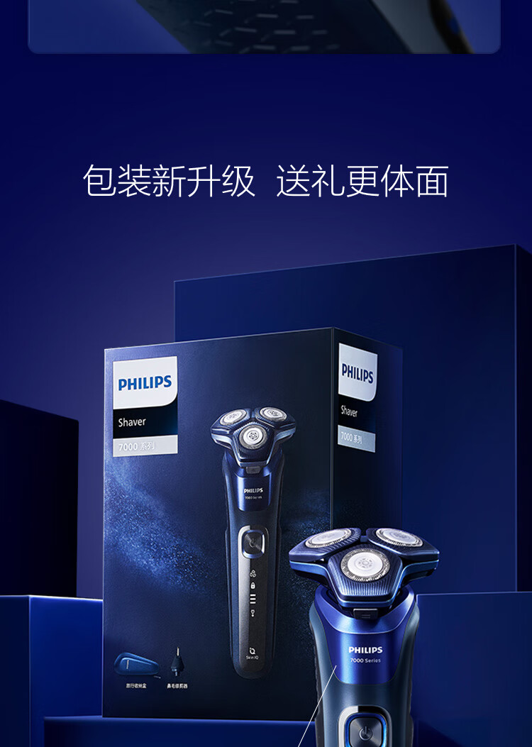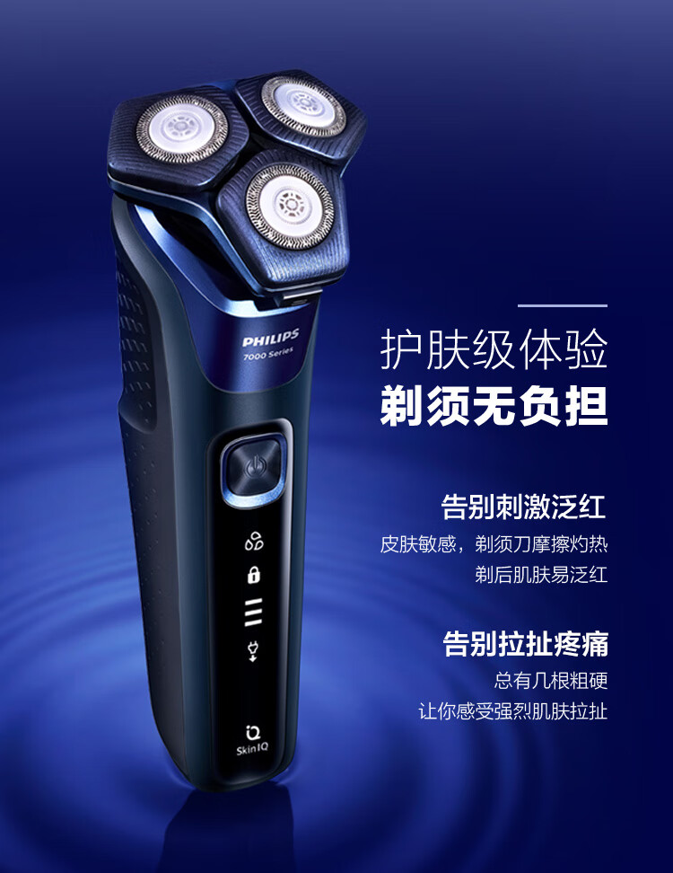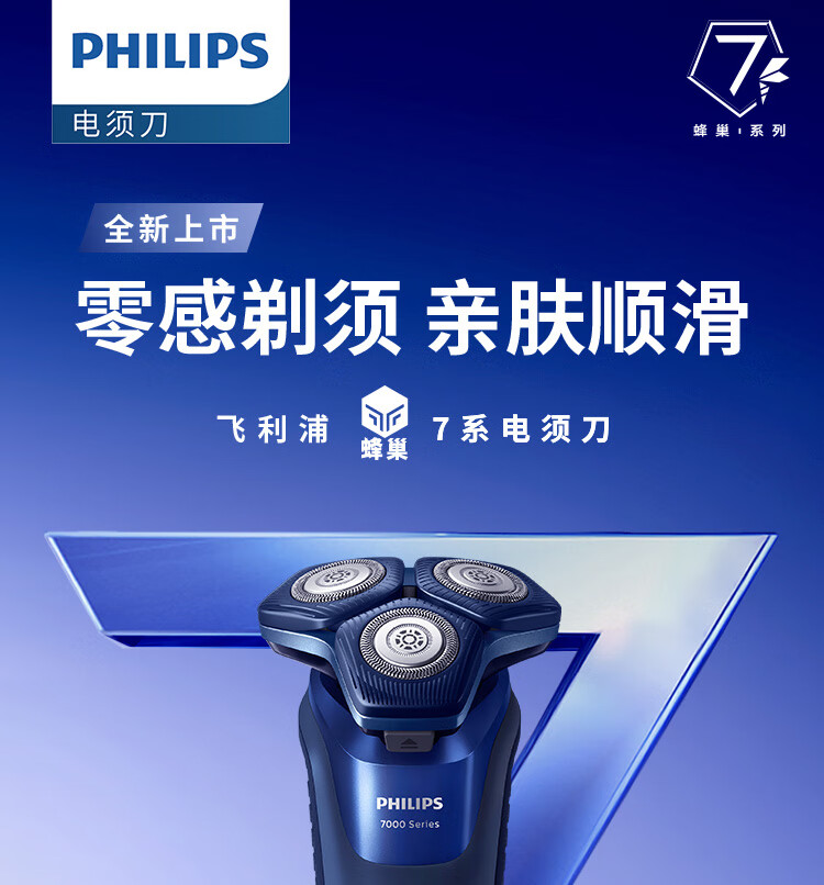 【6F】飞利浦(PHILIPS)蜂巢7系电动剃须刀SkinQ肌能感应科技全身水洗便携胡须刀 全新包装S7399/03