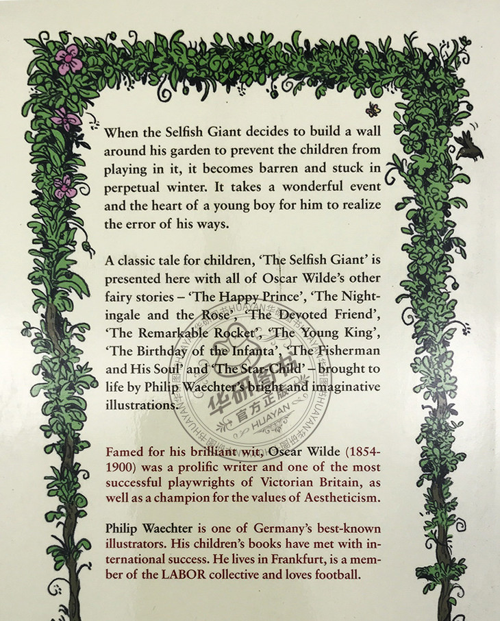 奥斯卡·王尔德是19世纪英国唯美主义的代表作家,其创作的童话语言纯正优美,意境高洁悠远、益人心智,堪称儿童文学的瑰宝,也是世界文学宝库中不可多得的佳作。
