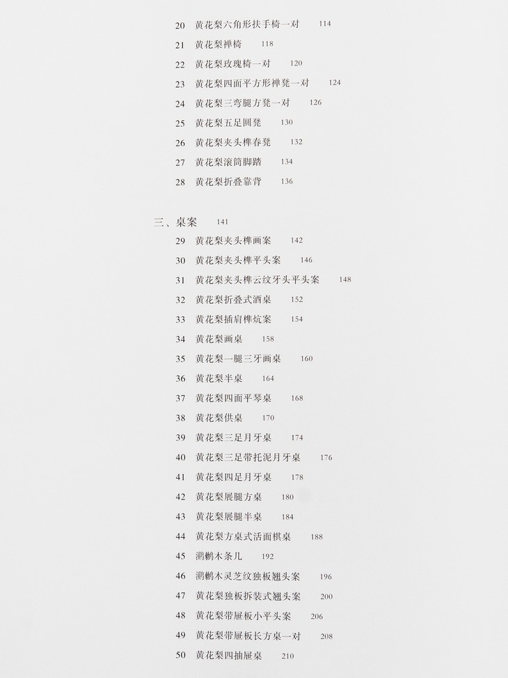 明代《三才图会》所记的家具种类,已经十分完备。它们包括︰椅、桌、几、案、盒、箱、棋盘、天平、柜、床及屏风。当中的一些家具,如椅和桌,外形和现代的没有太大分别,只是现代家具或渗入部分西方元素。另外一些如香几、小屏风等,现代家居已很少用到,但在古代却是常用家具。本图录共选取晏如居所藏95件明式硬木家具,以黄花梨木为主,分为床榻、椅櫈、桌案、柜架、箱盒、香几及台屏、雅玩小件,共七类。体例上,家具名称参照王世襄先生做法,采用先材质后形制的表述方式,而且每件家具也附有尺寸和年代数据,以便读者参考。明式家具的年代判定是困难的,本书所记的年份只是一个概略,这点希望读者能够体谅。此外,博物馆馆藏和前辈收藏家的藏品,如有可资对照的,也会转录。这本图录记录我收藏家具的历程,载录的藏品均展现明式家具材美工良、结合实用和美观为一体的特色。每件家具附有解说和插图,阐述它们的用途,让读者更深入认识古人的生活面貎。我希望本书能为研究明式家具的学者,提供可资参考的例子,也愿读者朋友在翻阅后,有赏心悦目的感受。