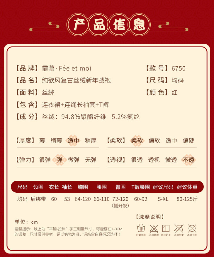新品内衣 纯欲风复古丝绒新年战袍 号6750