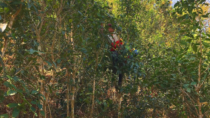 云南大叶种茶叶是乔木型树种,生长最高可以达到15-20米。茶树的根系发达,主根系深度在5米以上,能够吸取深层土壤深处的矿物质和微量元素。单伟尊重茶树原始的生长状态,不修枝、不断头,这样茶树的树干可以在生长时期聚集更多的营养供春天发芽生长。