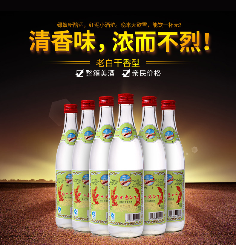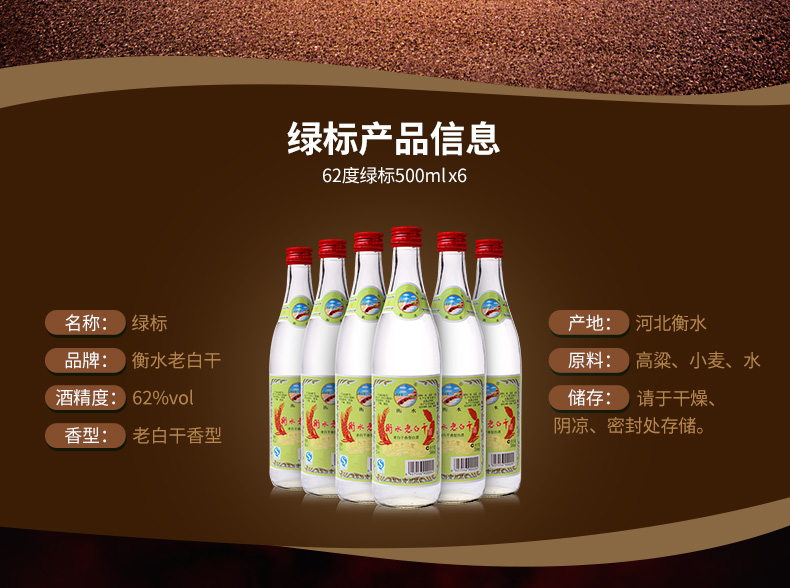 【整箱】衡水老白干 绿标 香型白酒 62度 500ML*6瓶