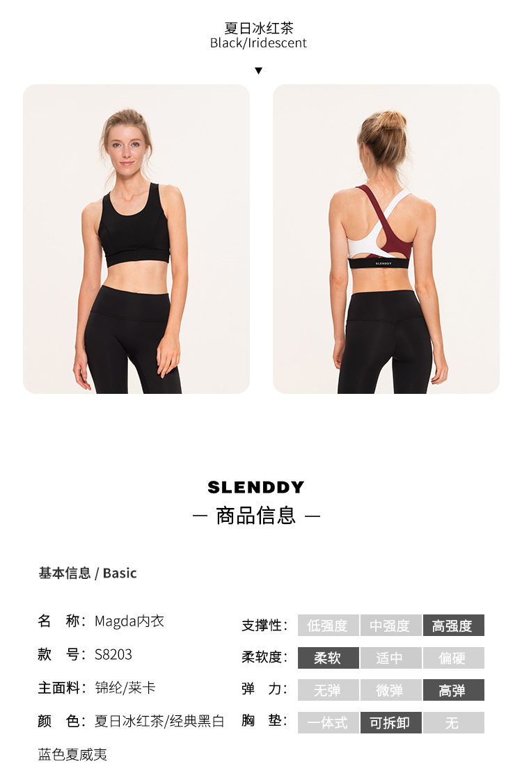 slenddy Magda春夏高强度美背瑜伽背心式带胸垫防震运动内衣S8203
