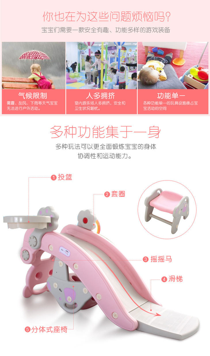 【婴幼儿用品】*儿童滑梯摇摇马二合一生日礼物车一周岁宝宝婴儿两用玩具木马宝宝