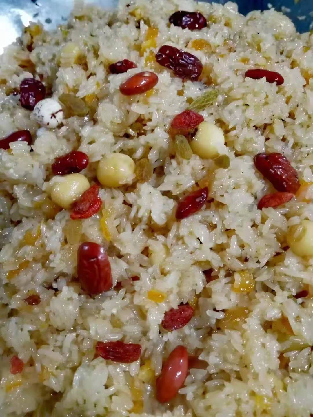 传统的【老长沙手工果饭】一定少不了红枣 ,湘莲🍈 ,桔饼🍋 ,枸杞🍒 ,葡萄干🍇 ,红薯干🍠 ,冬瓜糖🥔 ,红绿丝🍍 ,红糖🥝 ,桂花蜜🥑 ………