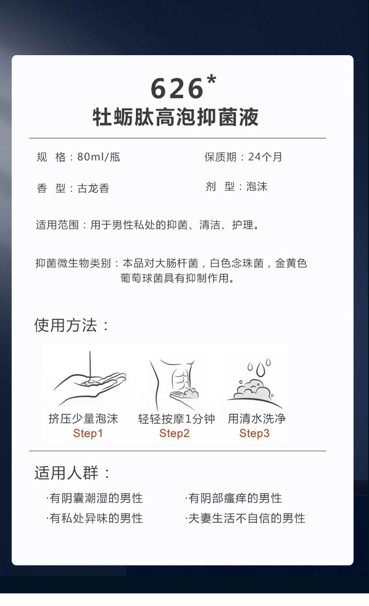 【男士私处清洗液保密发货】626牡蛎肽男士泡泡护理液