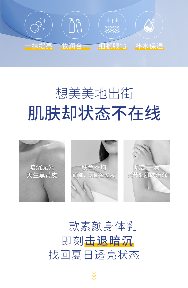 【肌肤之食水感保湿素颜夏季身体乳】全身一抹打造素颜发光肌不假白速闪耀免卸妆补水保湿细腻服帖妆润合一防水防汗不闷热温和补充肌肤全身可用击退暗沉找回夏日透亮状态