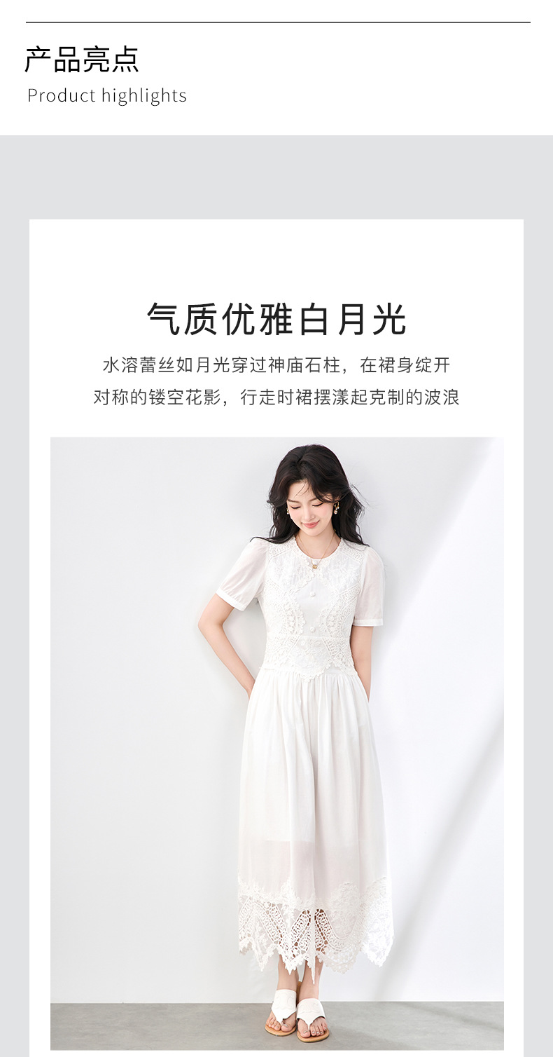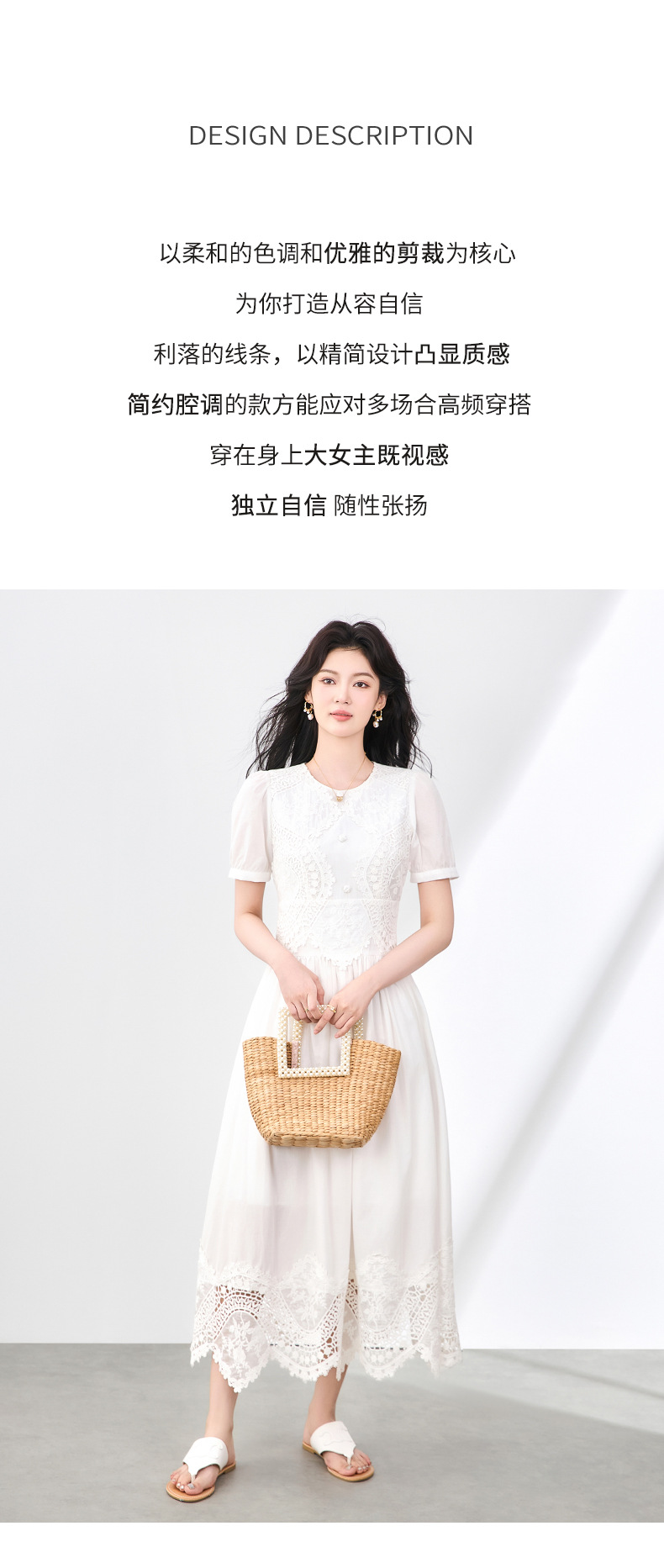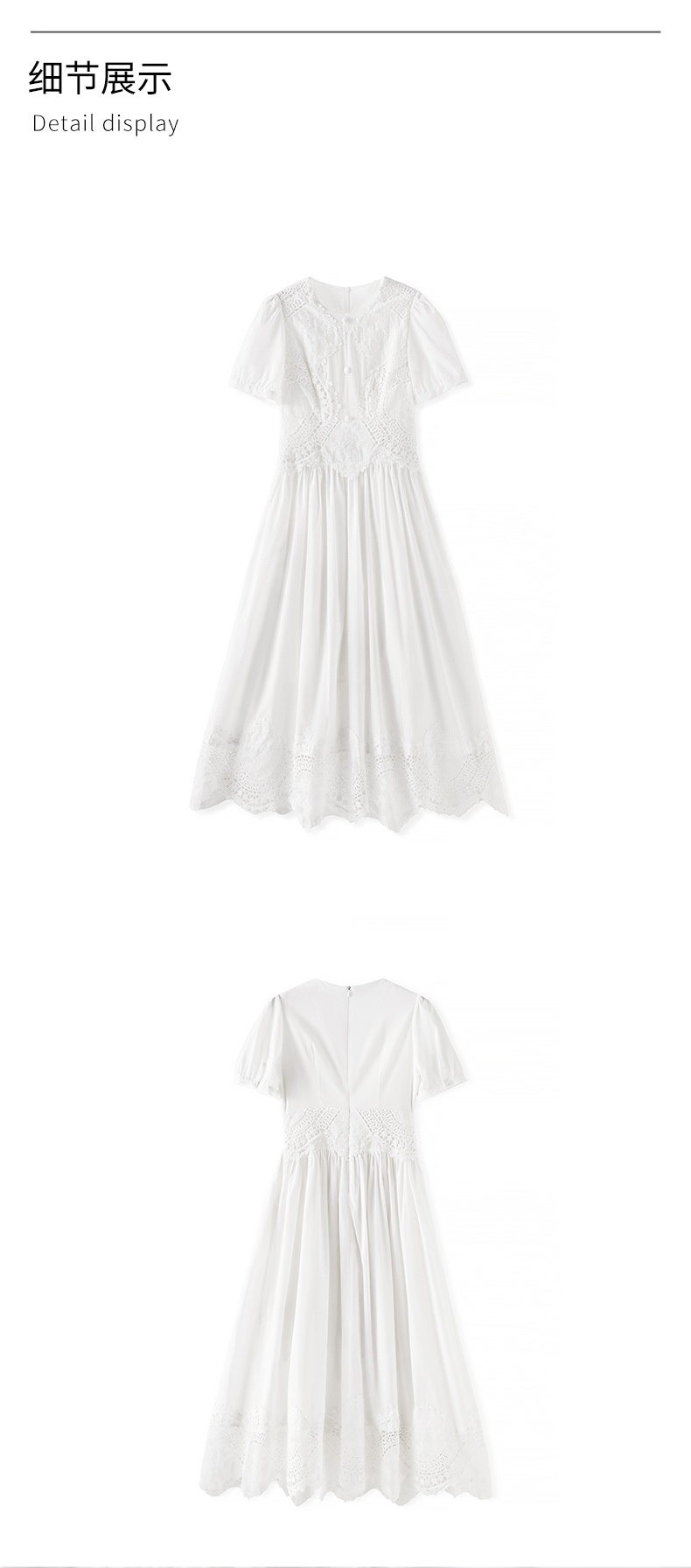 「高货wl」全新升级【铂金会员404/天猫539/差价135】(20959)洛诗琳定位镂空绣花连衣裙2025夏季棉质度假风白色长裙女