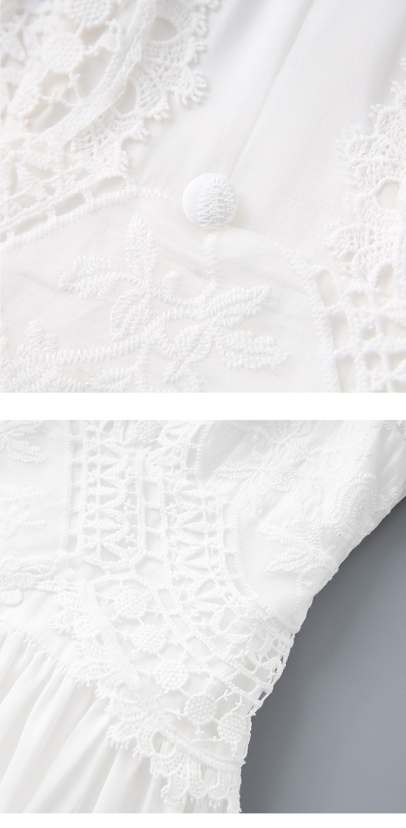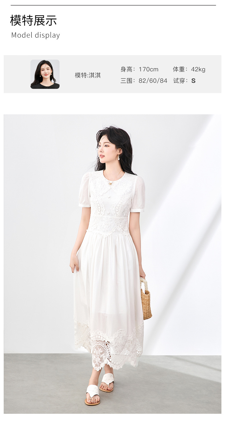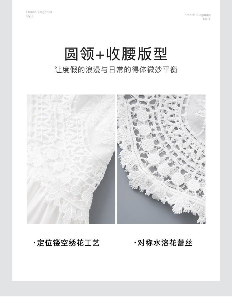 「高货wl」全新升级【铂金会员404/天猫539/差价135】(20959)洛诗琳定位镂空绣花连衣裙2025夏季棉质度假风白色长裙女
