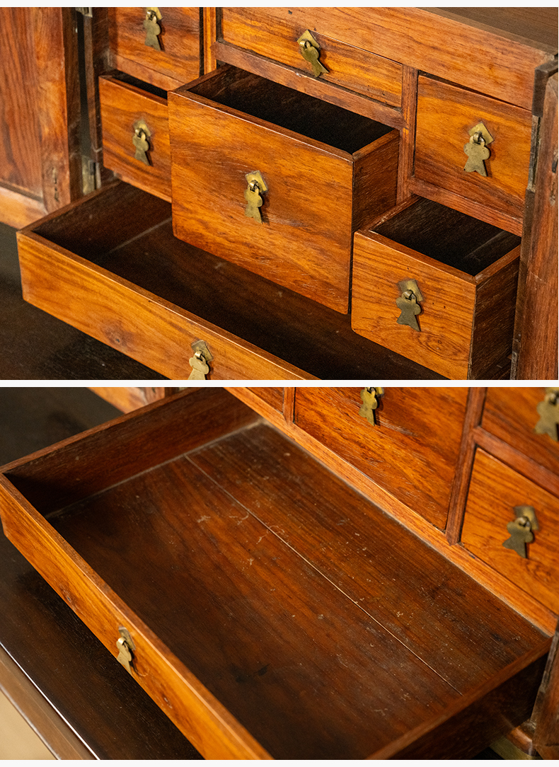 清 黄花梨镶绿石透雕螭龙纹大插屏
