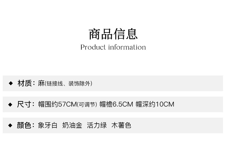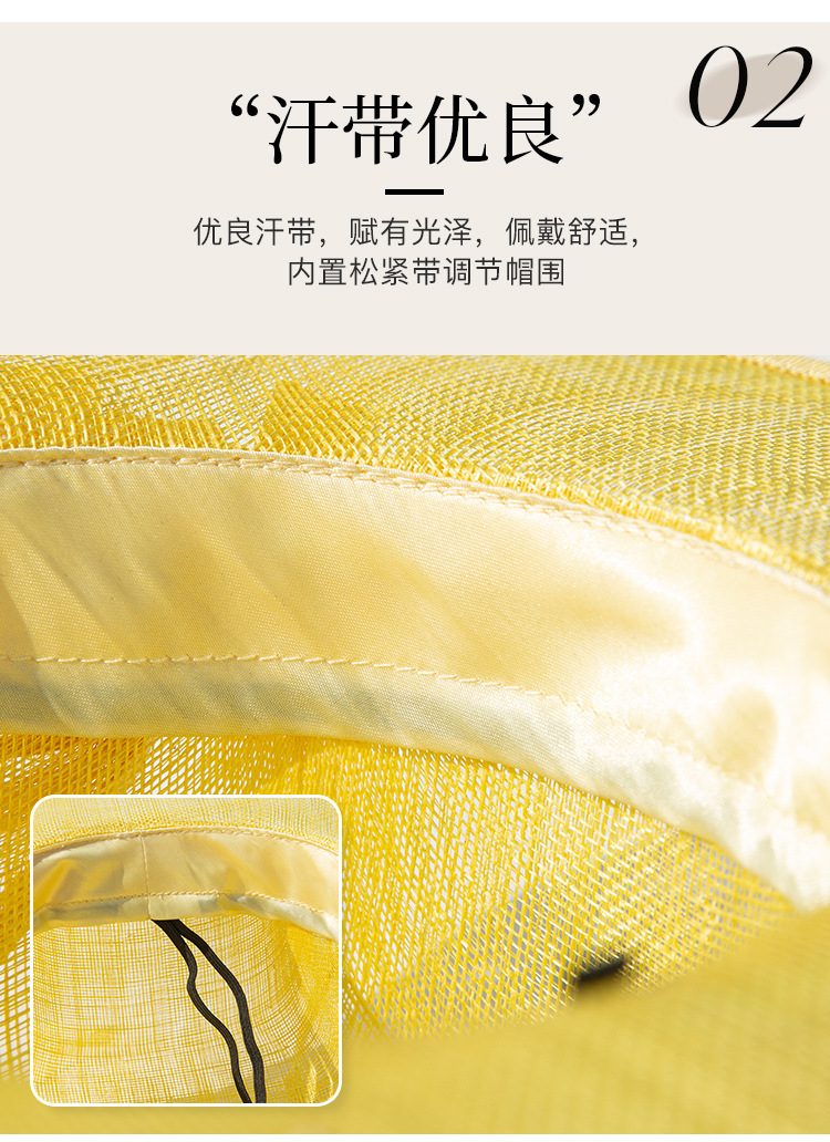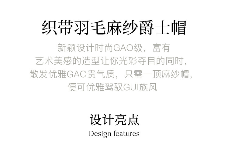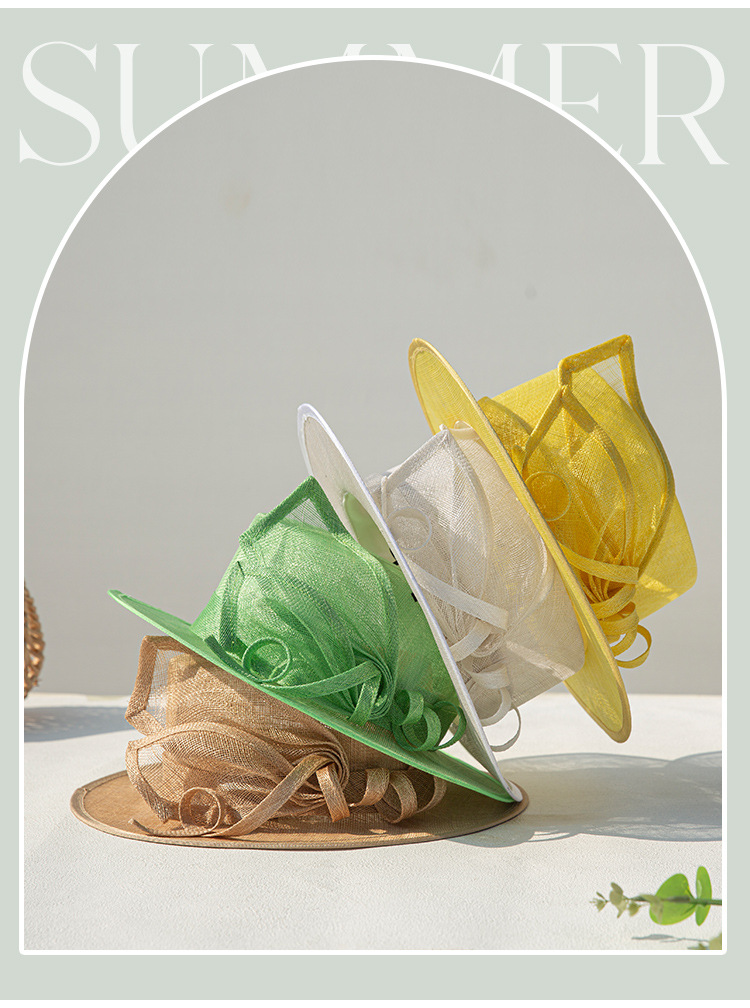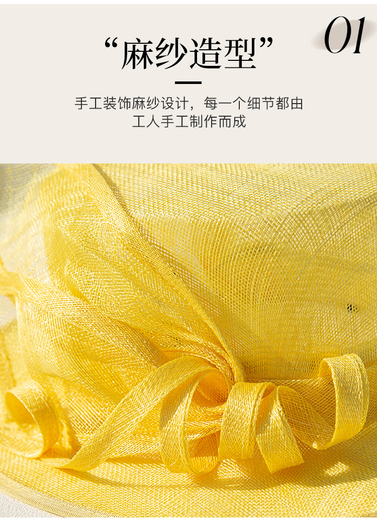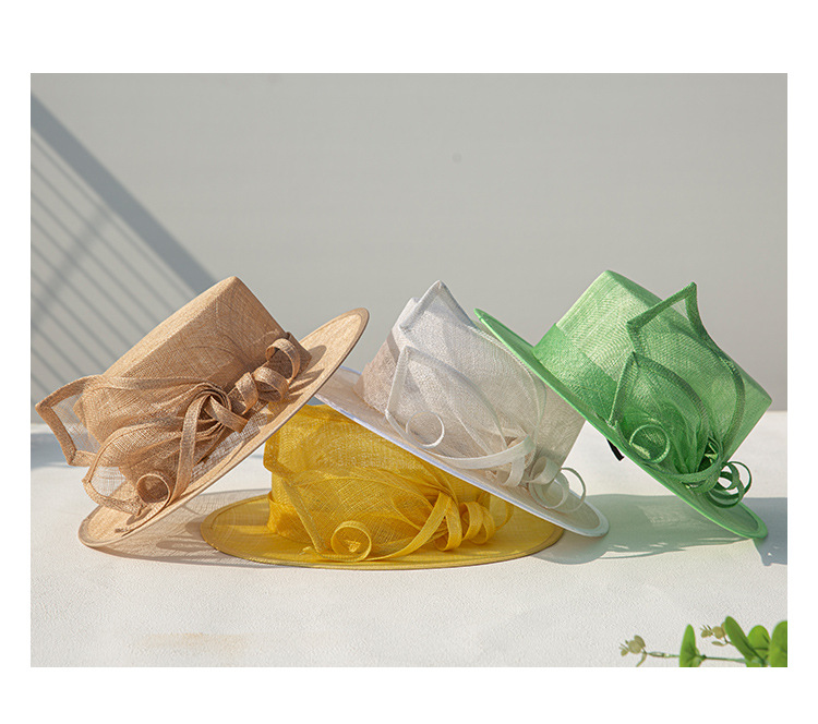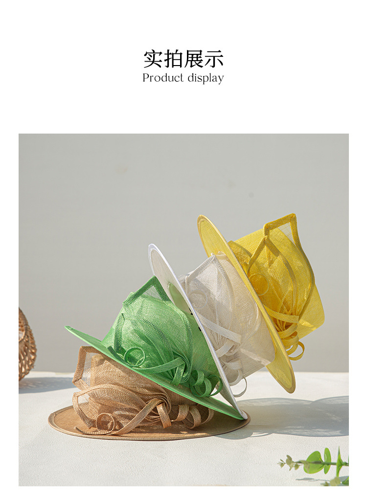 雀说 新款夏麻纱帽出游防晒纯色时尚礼帽英伦风平顶帽宴会帽子女4ZF-59009