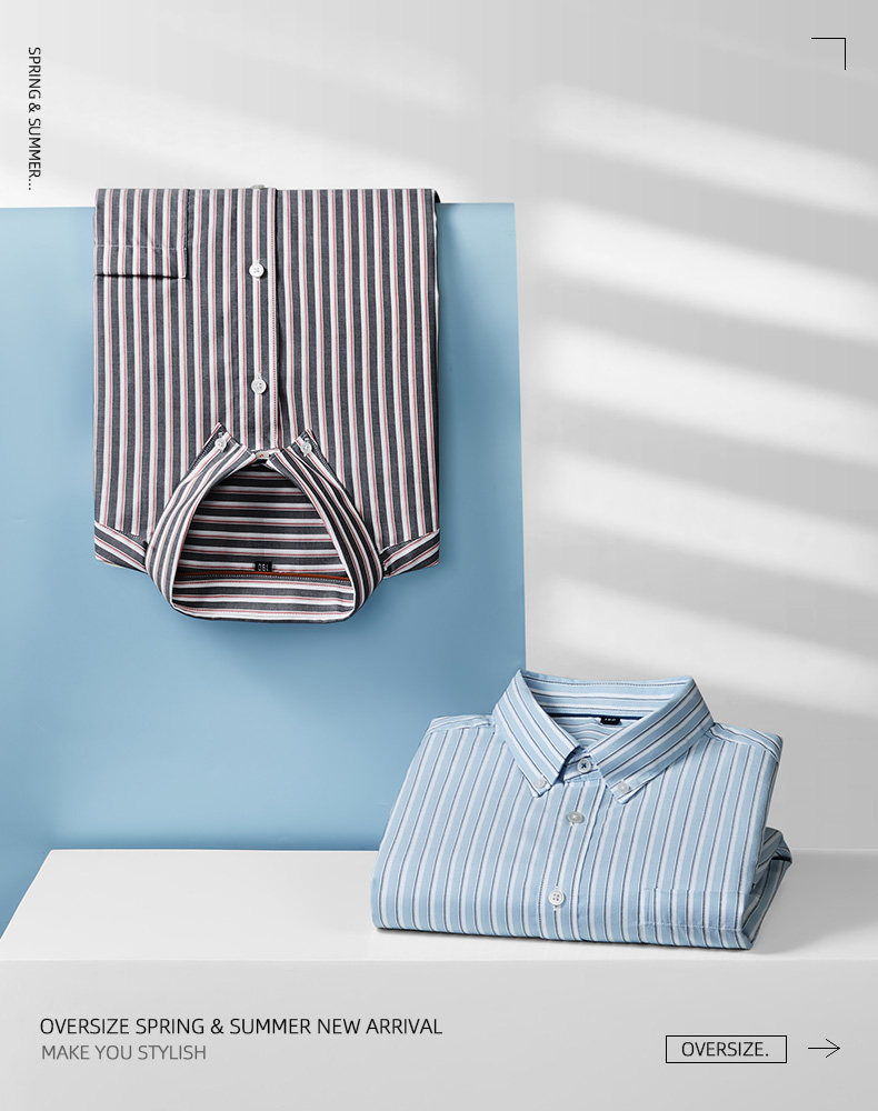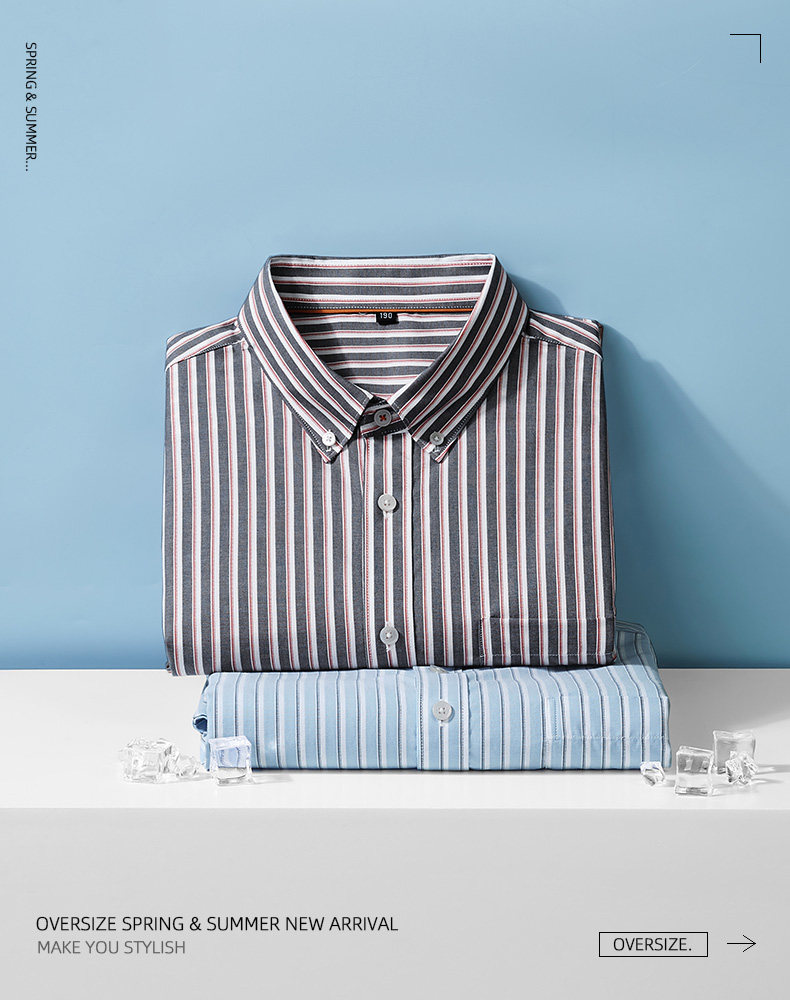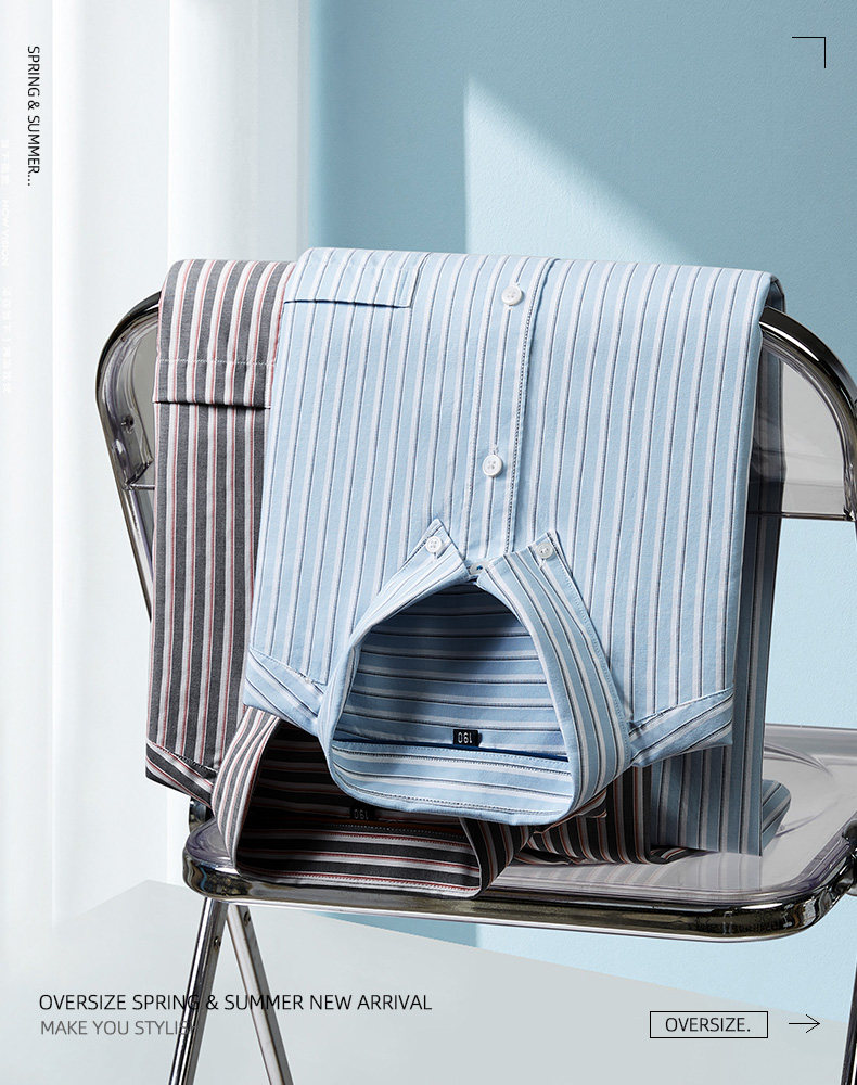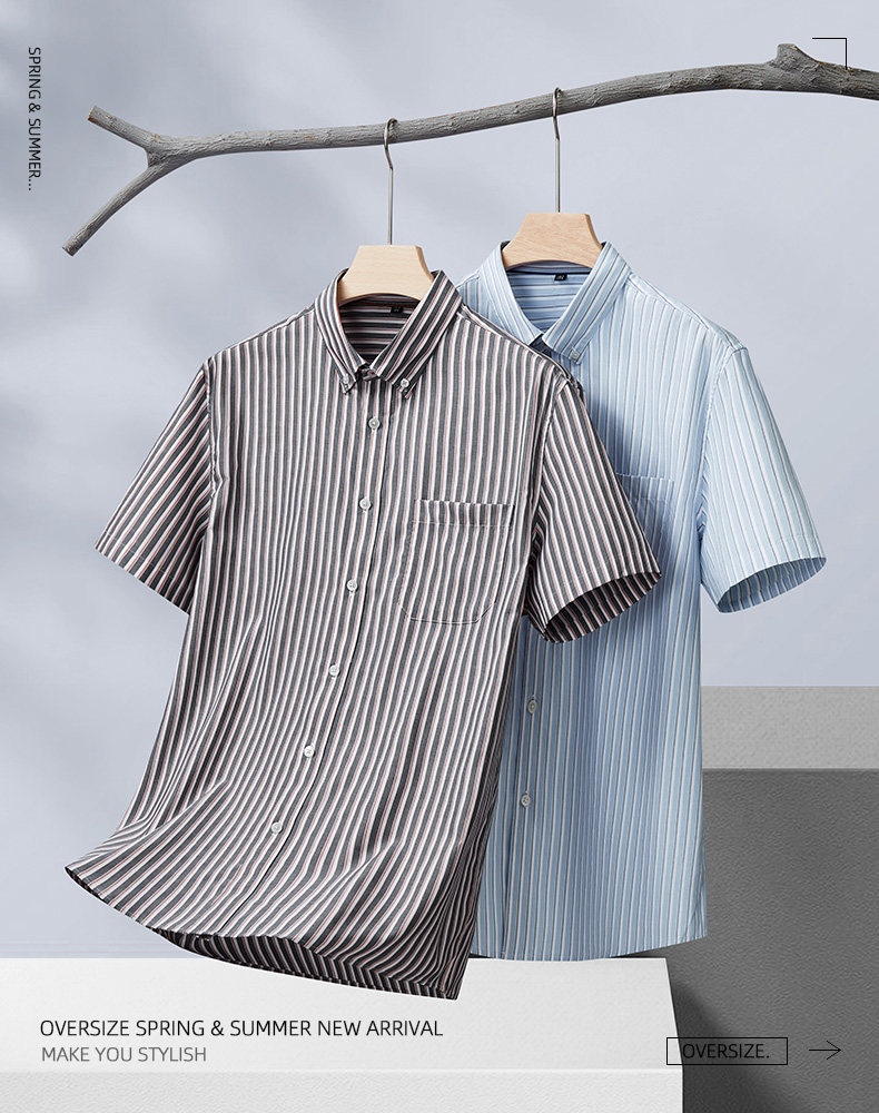 【DM】【纯棉】大依优型大码男装夏季竖条纹短袖衬衫商务休闲上衣T恤320