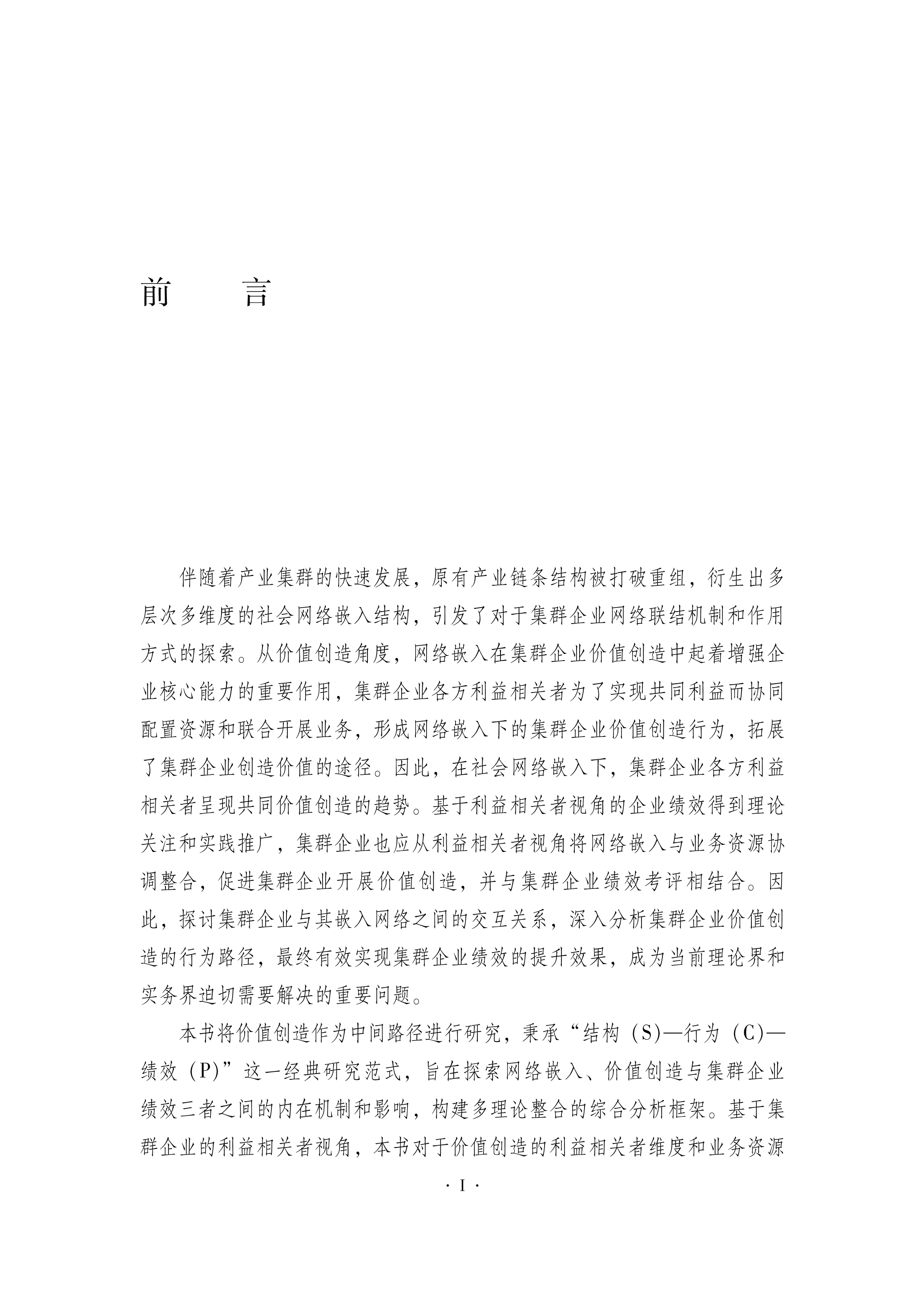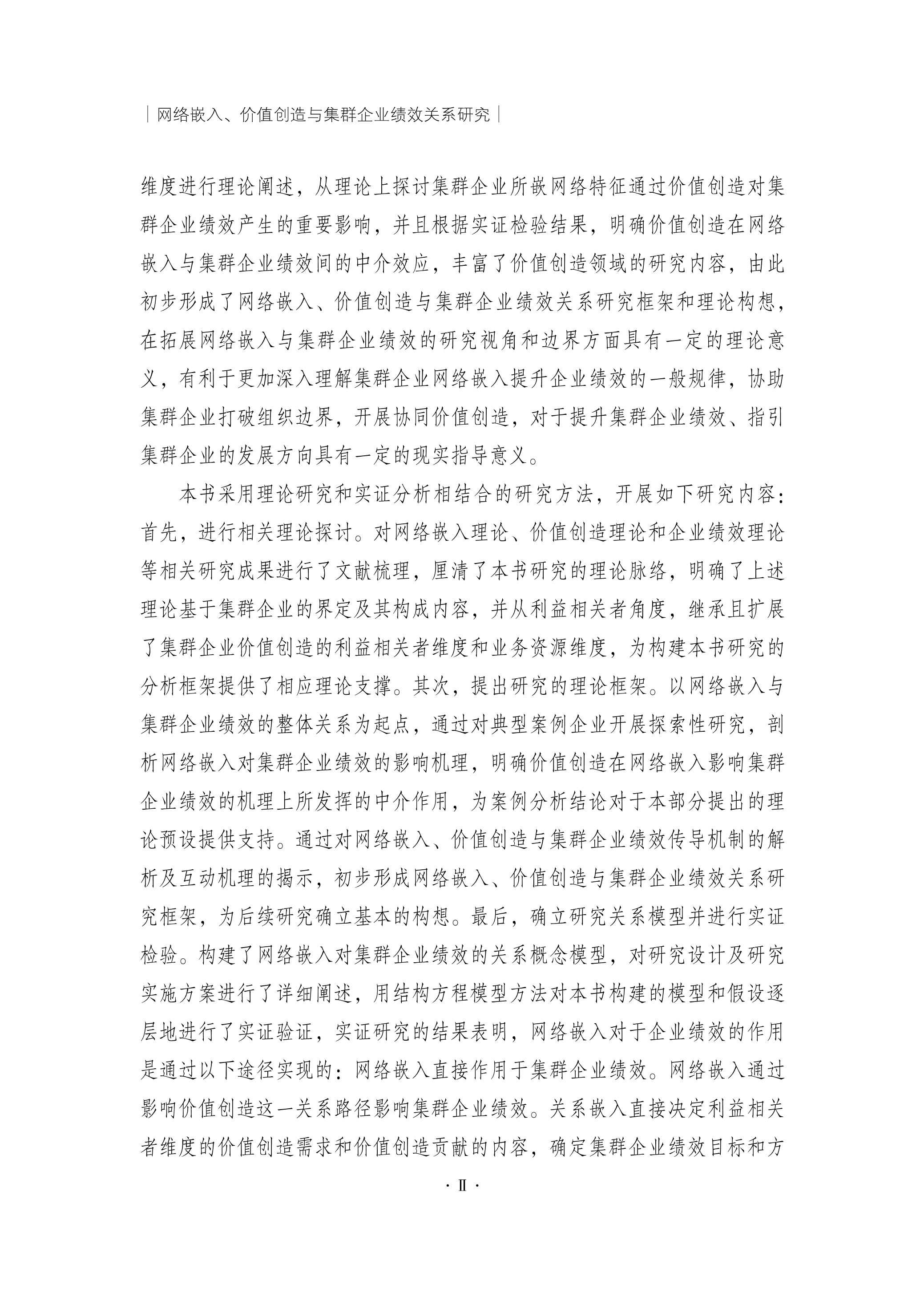 网络嵌入、价值创造与集群企业绩效关系研究