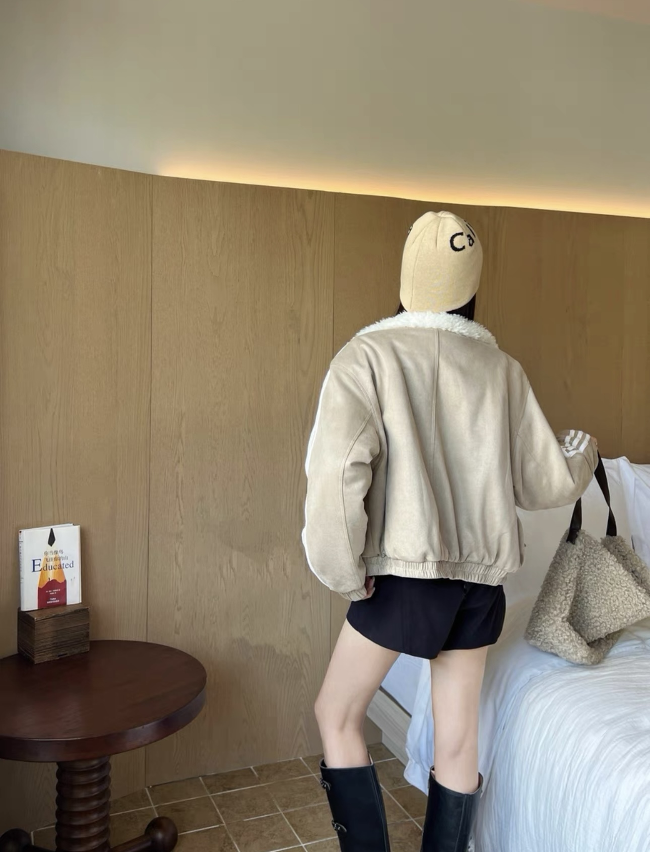 内里羊羔绒柔软舒适,外层麂皮防风,