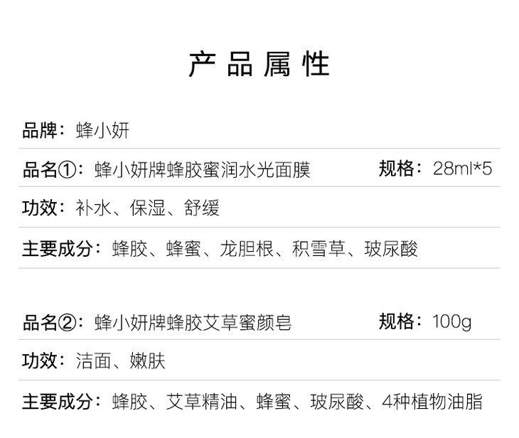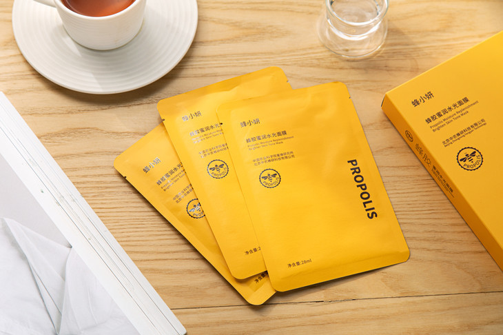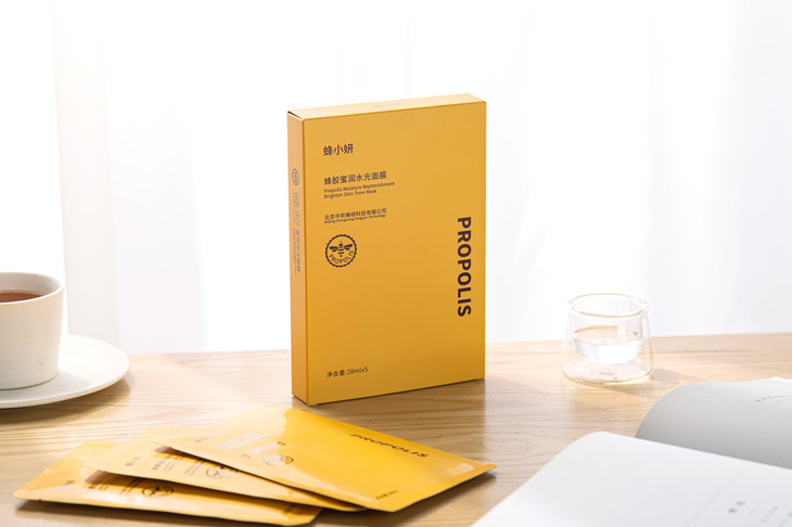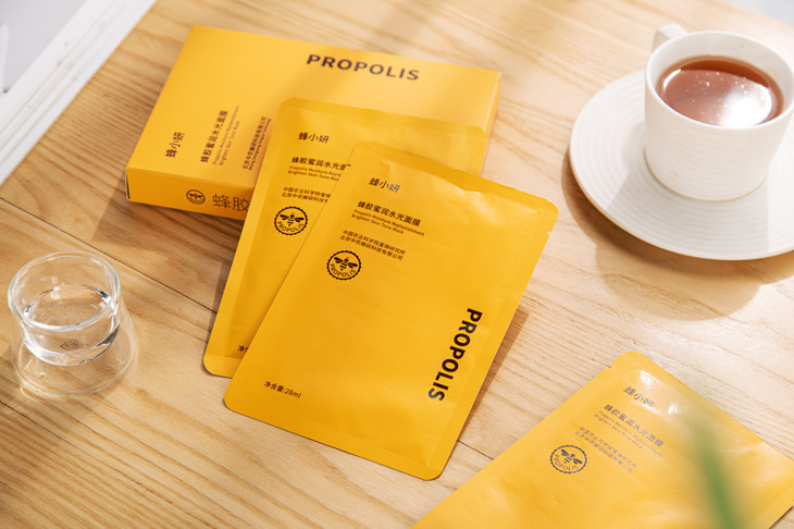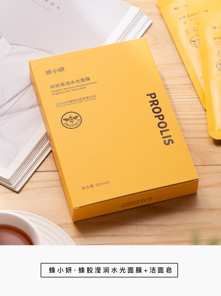 后来一问才想起来,这就是他们用通过检测、功效实在的天然蜂胶研发的—— 蜂小妍蜂胶蜜润水光面膜 。