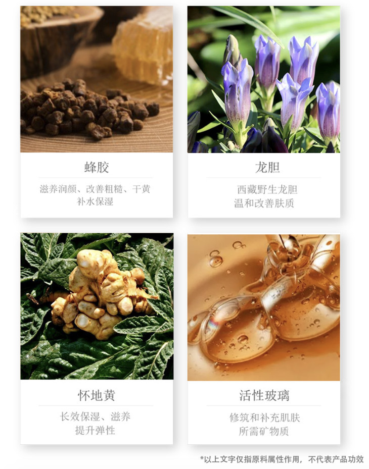 这样的养肤宝贝,再搭配上龙胆根、地黄、积雪草、蜂蜜、玻尿酸等多种补水利器。