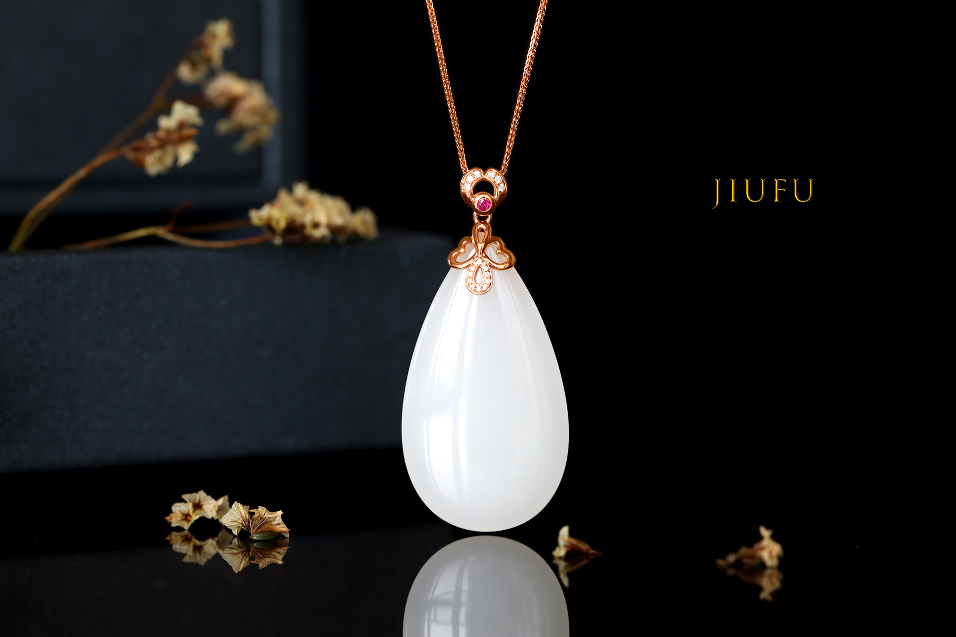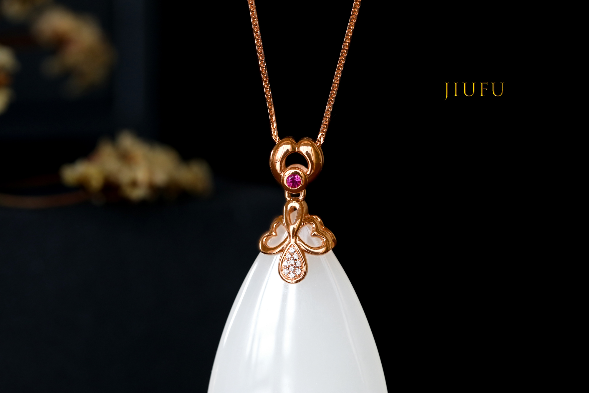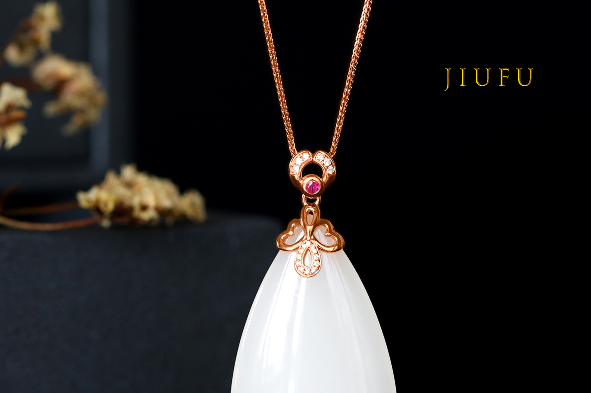 18k玫瑰金和田玉(白玉)吊坠