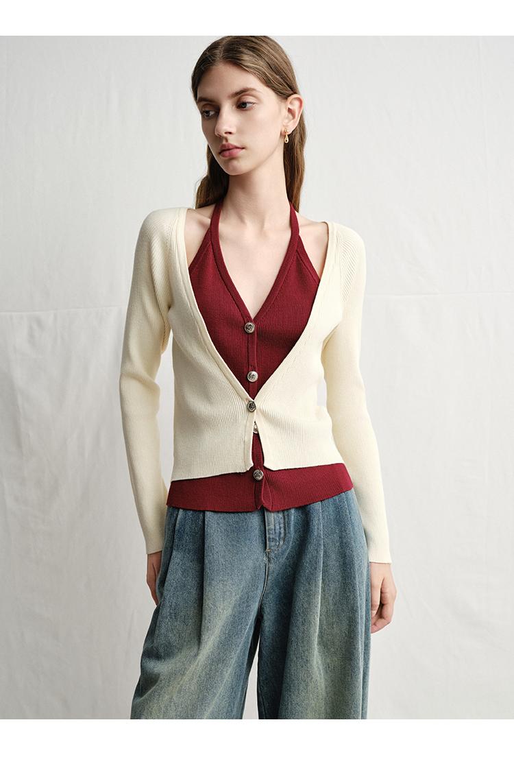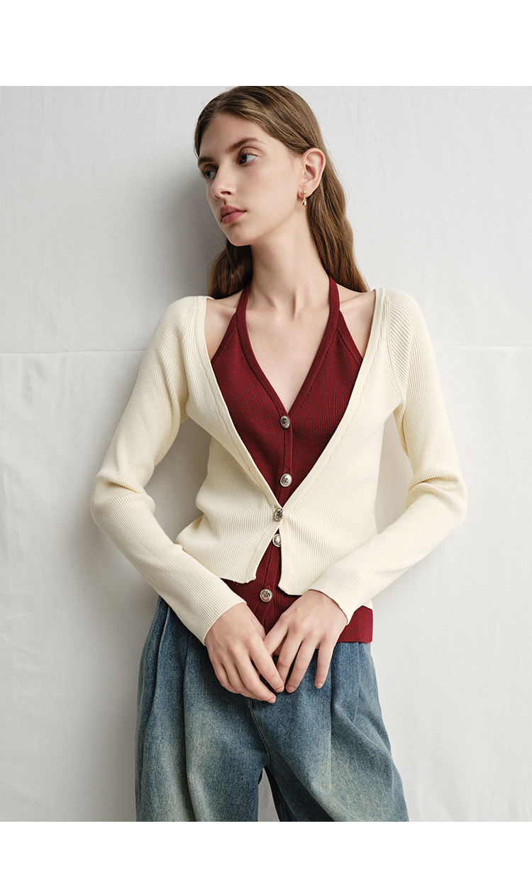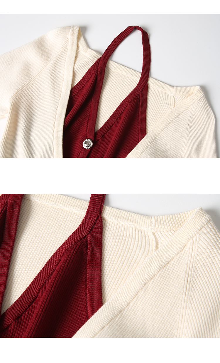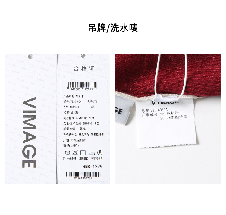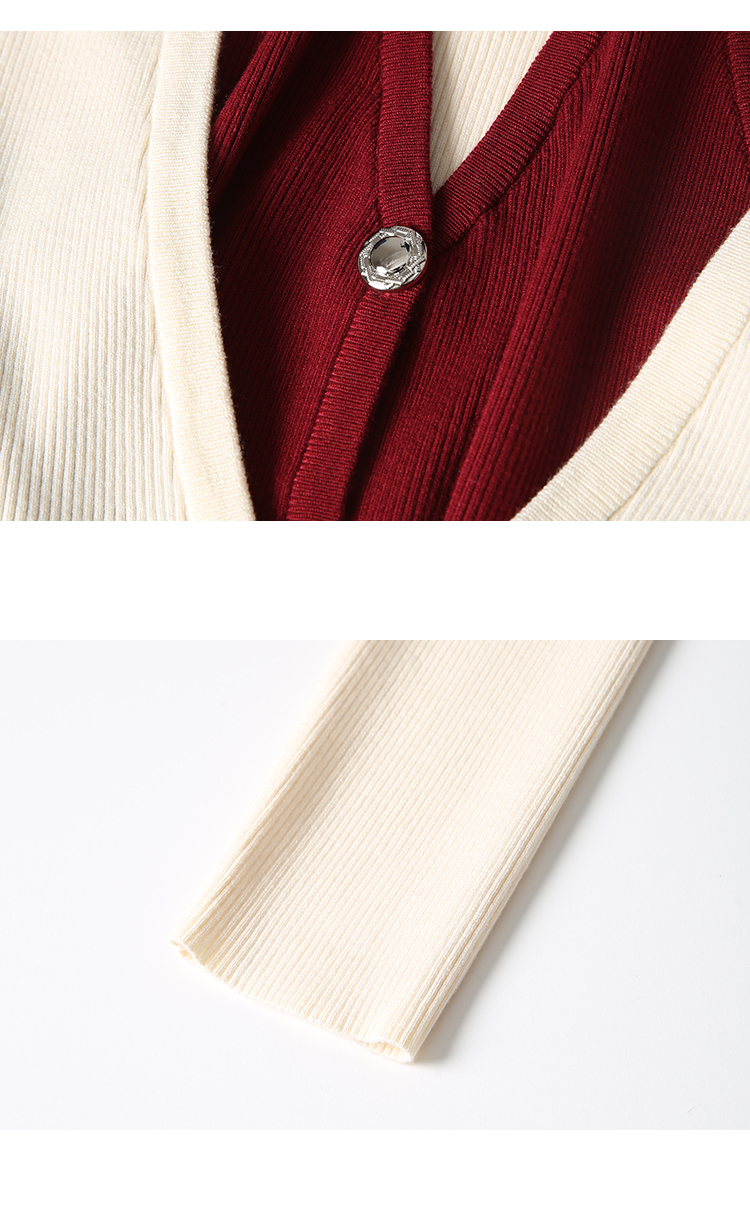 VIMAGE纬漫纪春季新款时尚撞色V领气质两件套针织衫V2301904