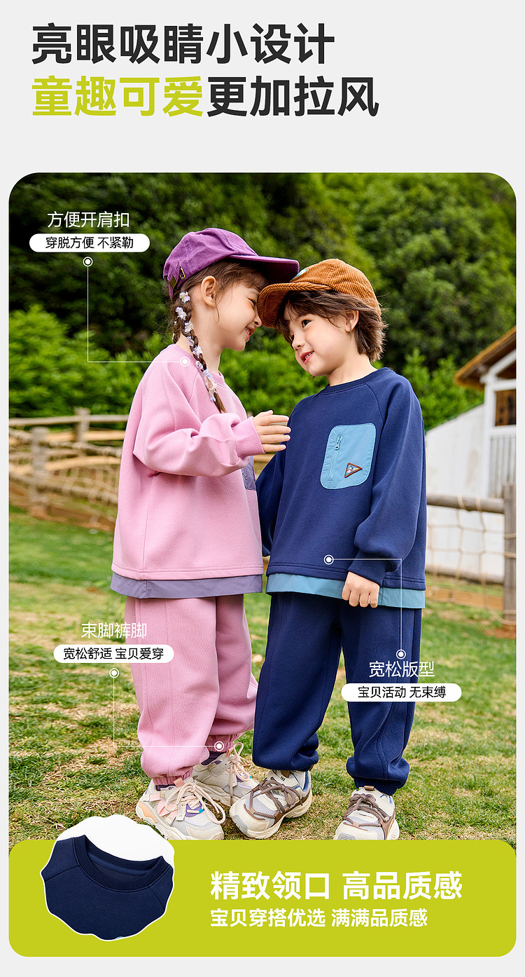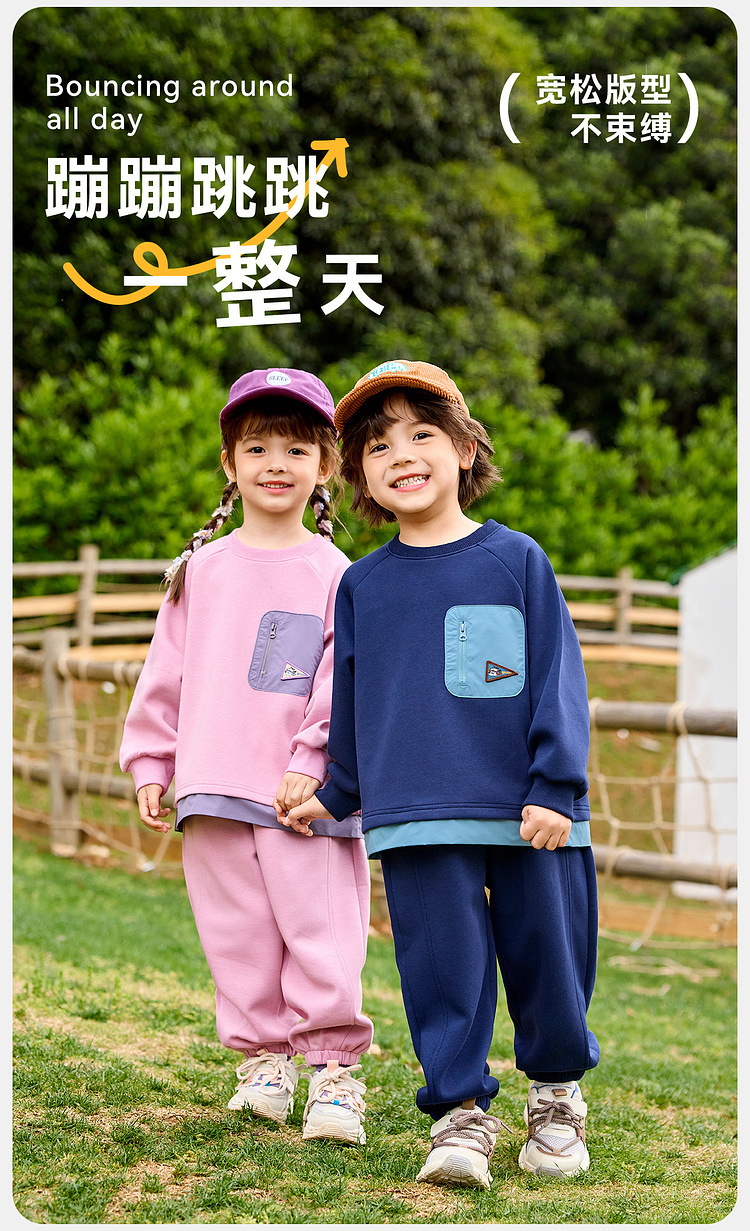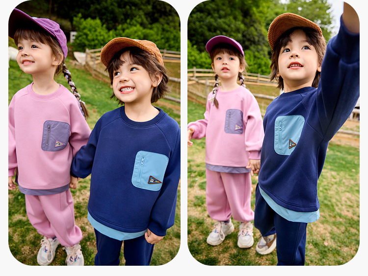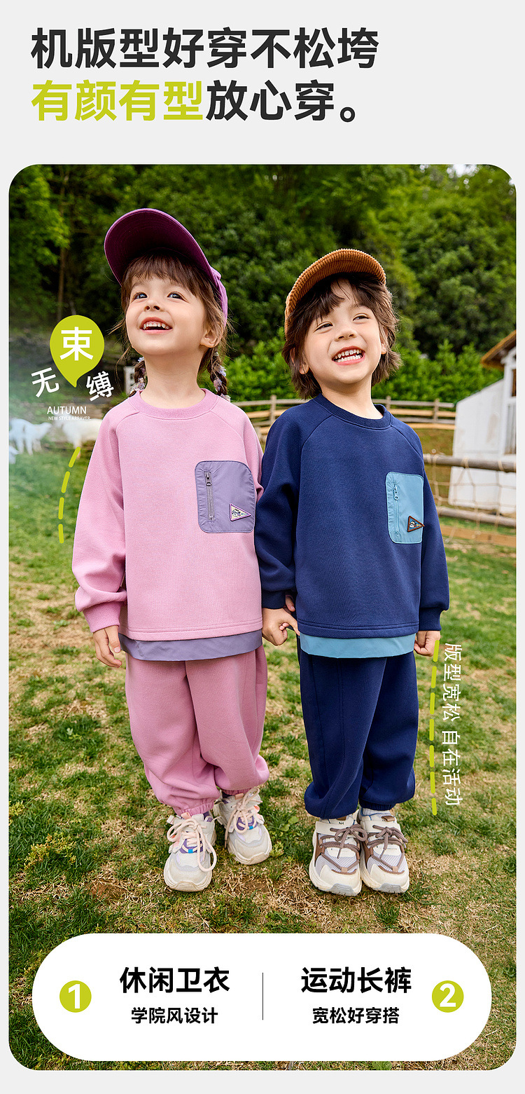 嘟嘟家儿童套装秋季新款男童女童拼色宝宝秋款童装婴儿休闲衣服