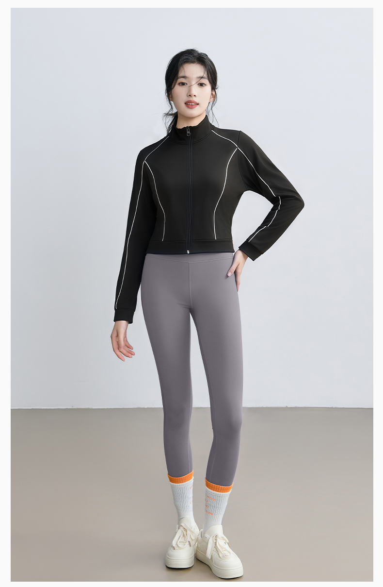 跃牌【瑜堂系列】新款线形宽松开衫外套春秋撞色高弹透气休闲运动外套女JYMW183