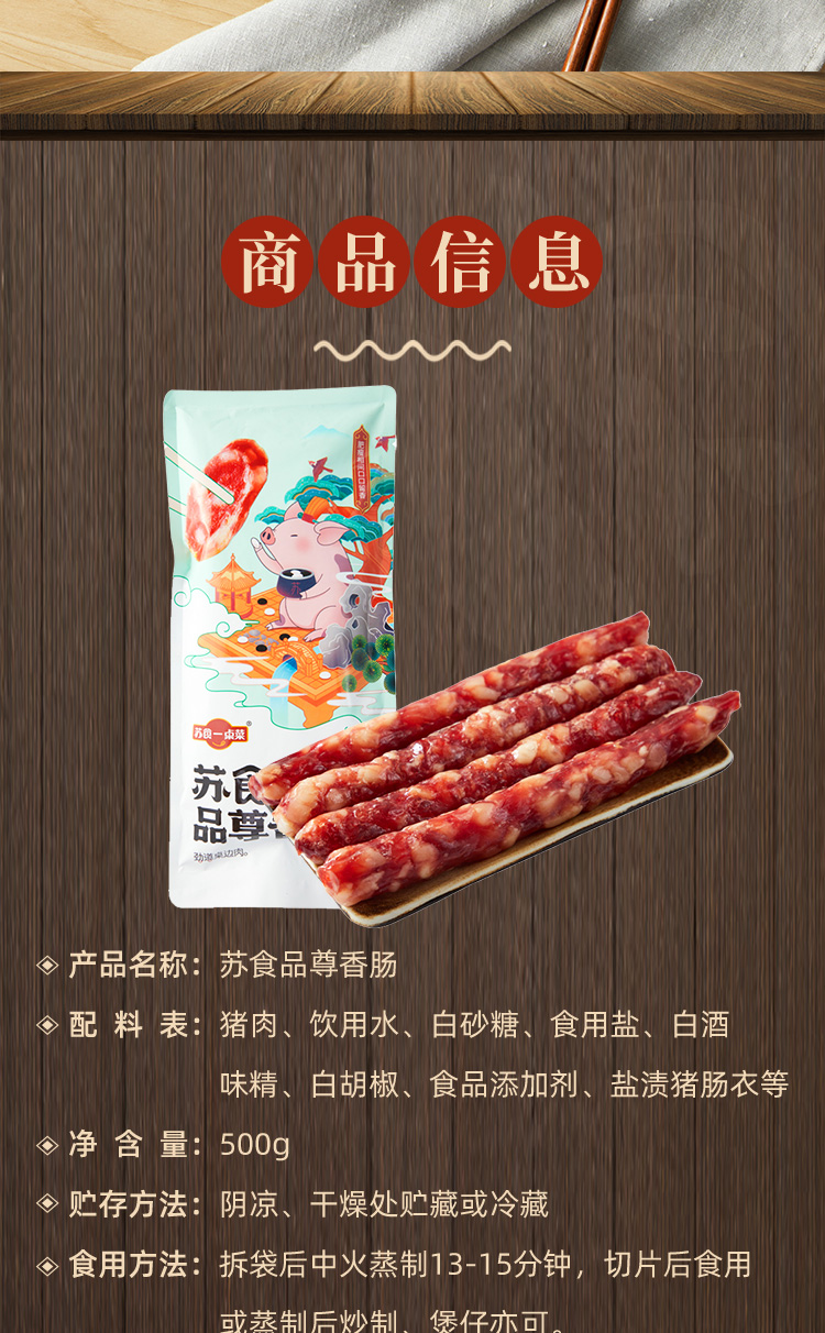 【南京提货券300-500】苏食品尊香肠500g*2袋