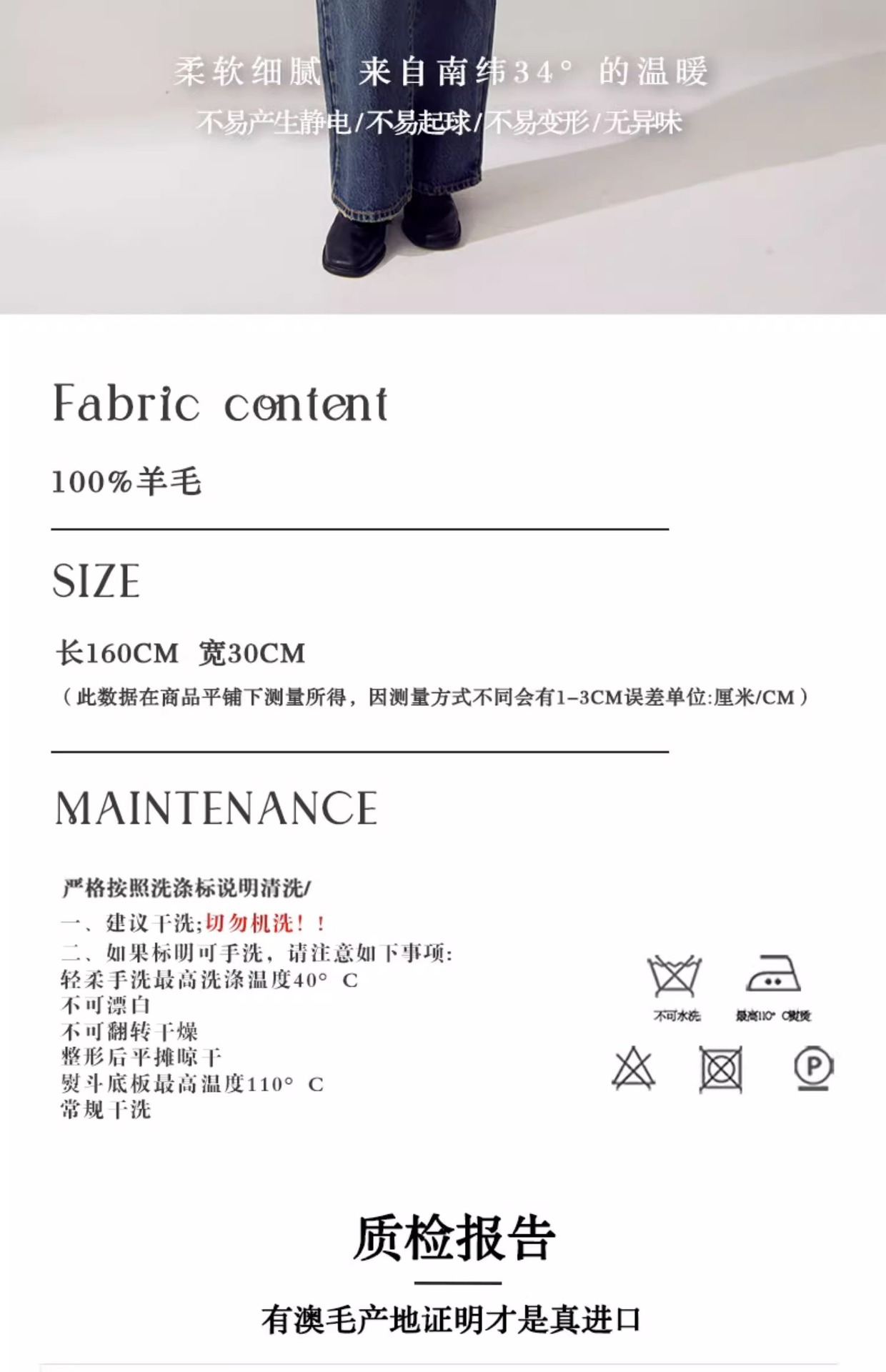 尺寸 长度160 宽度30CM 羊毛支数17支