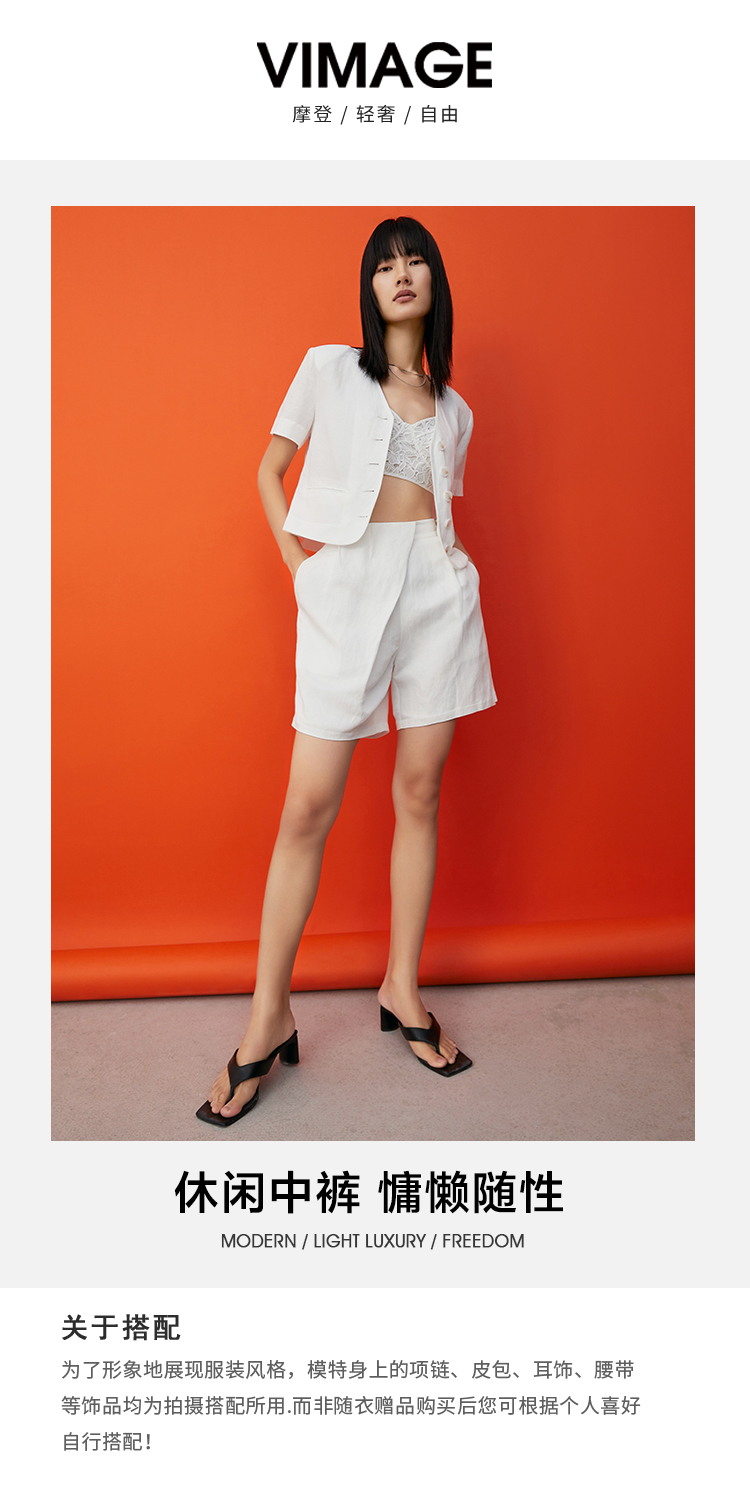 VIMAGE/纬漫纪夏季新款高腰宽松轻薄西装短裤V1705319