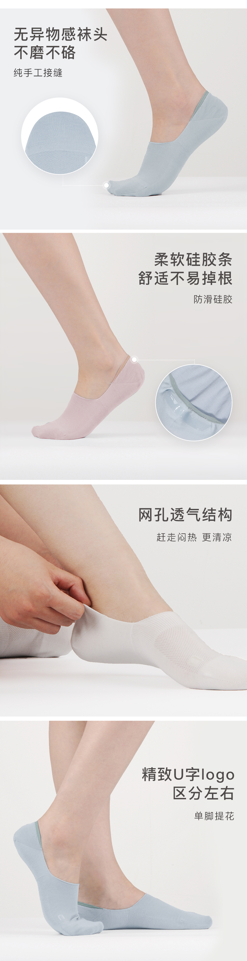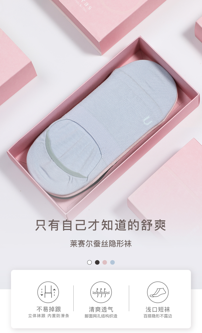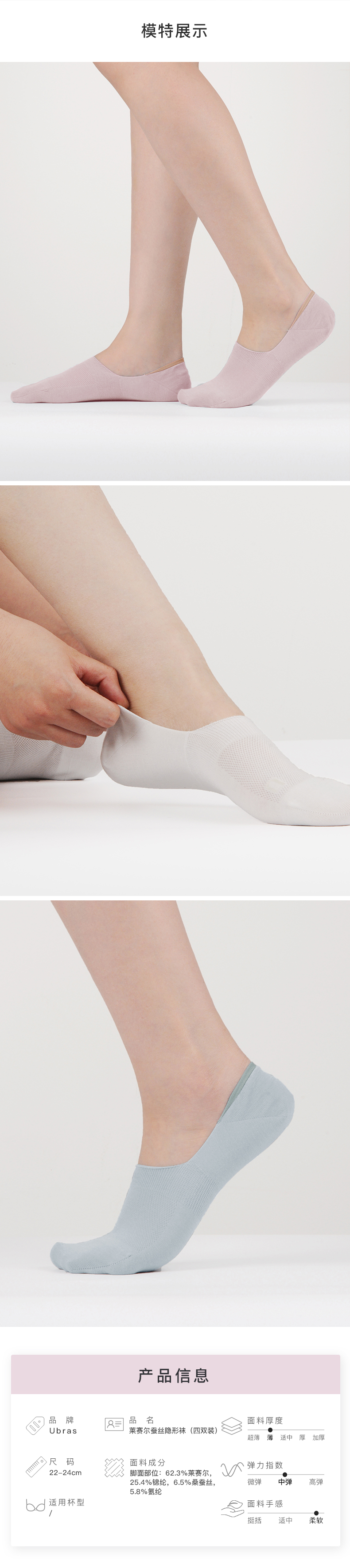 Ubras莱赛尔蚕丝隐形袜(四双装)舒适透气短袜船袜女浅口
