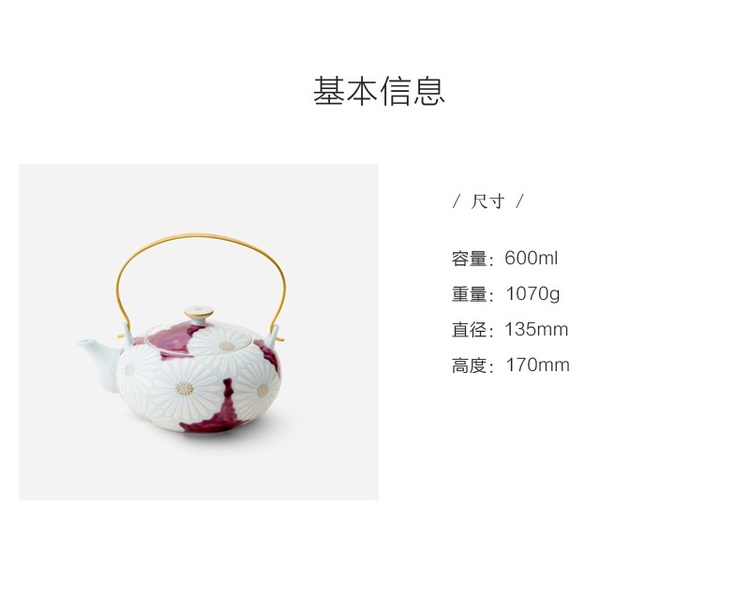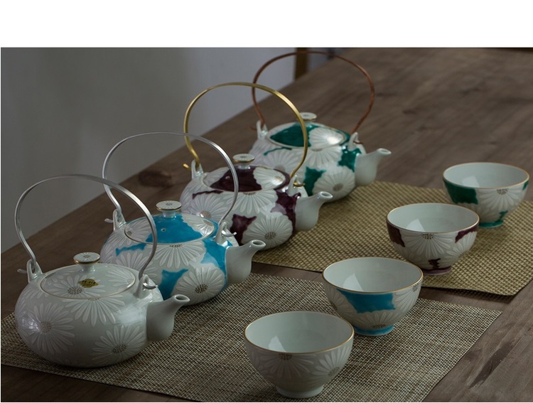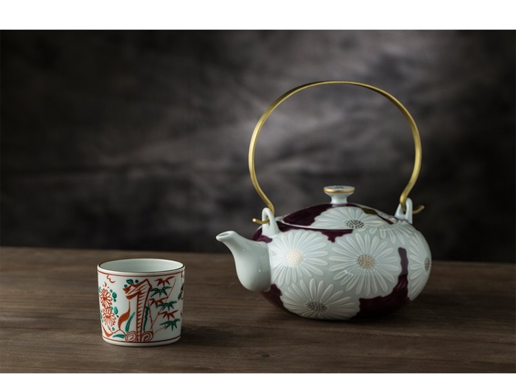 【T.NISHIKAWA】日本原产手工京烧清水烧白菊陶瓷茶壶