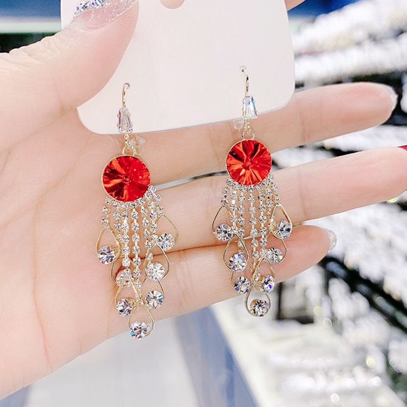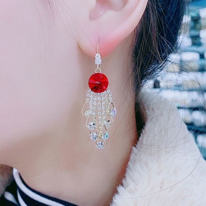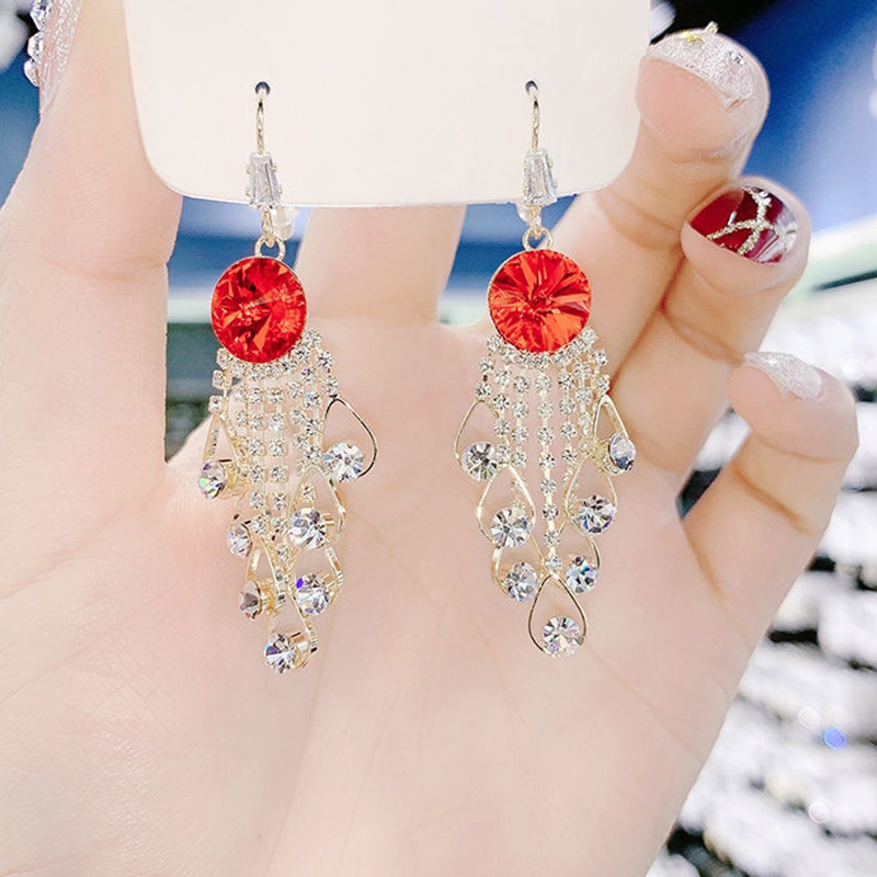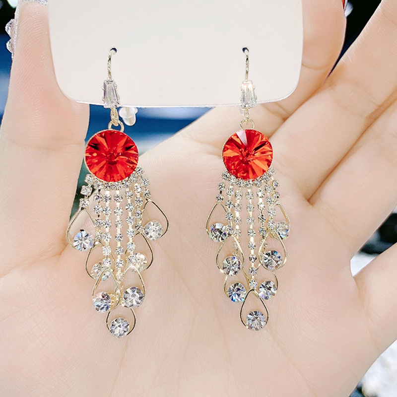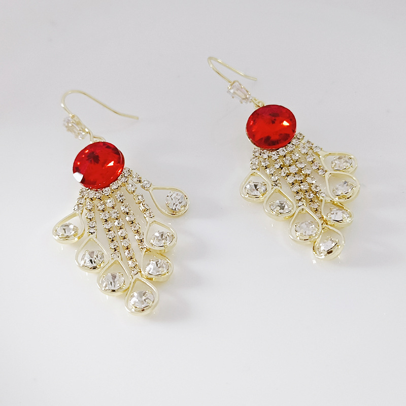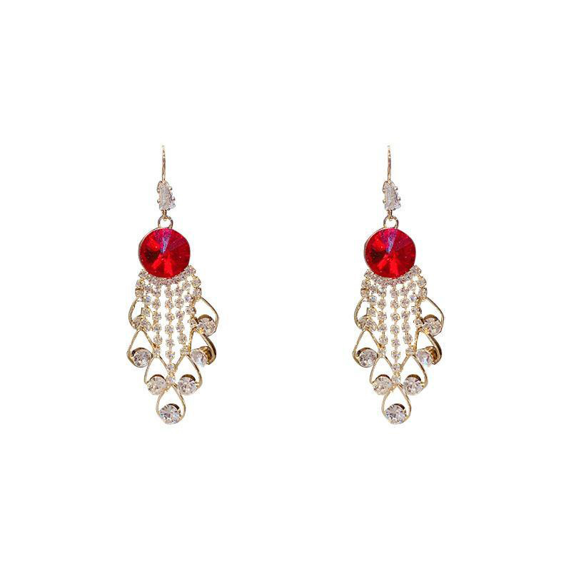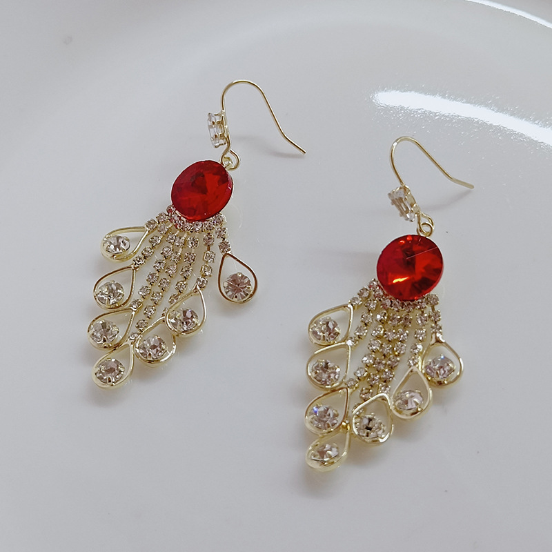 JU-A7132夏季新款日韩气质法式感水滴耳饰 红色锆石耳环韩版名媛耳坠