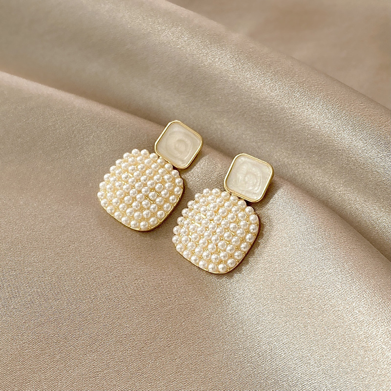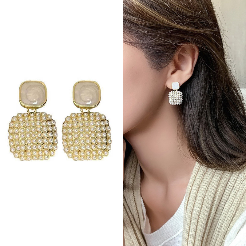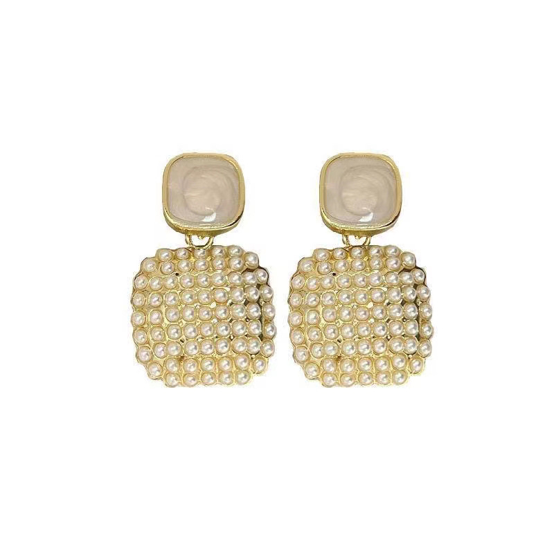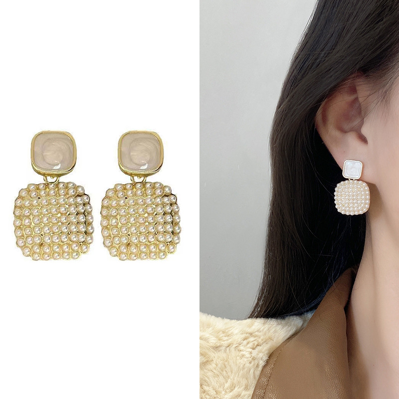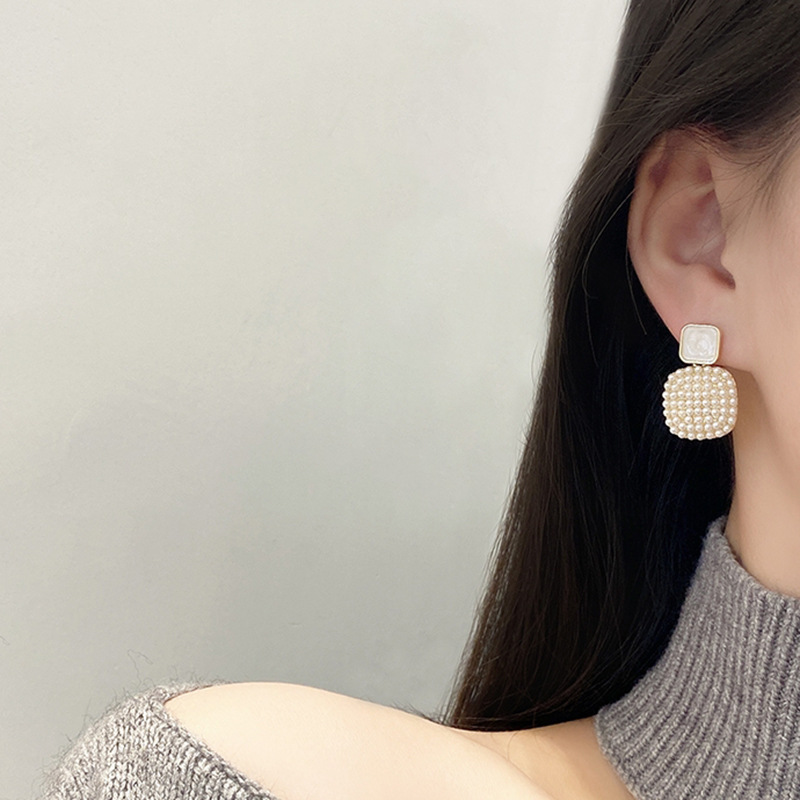 JU-A31062韩国感米粒珍珠耳环女气质简约百搭耳钉小众设计感方形耳坠饰