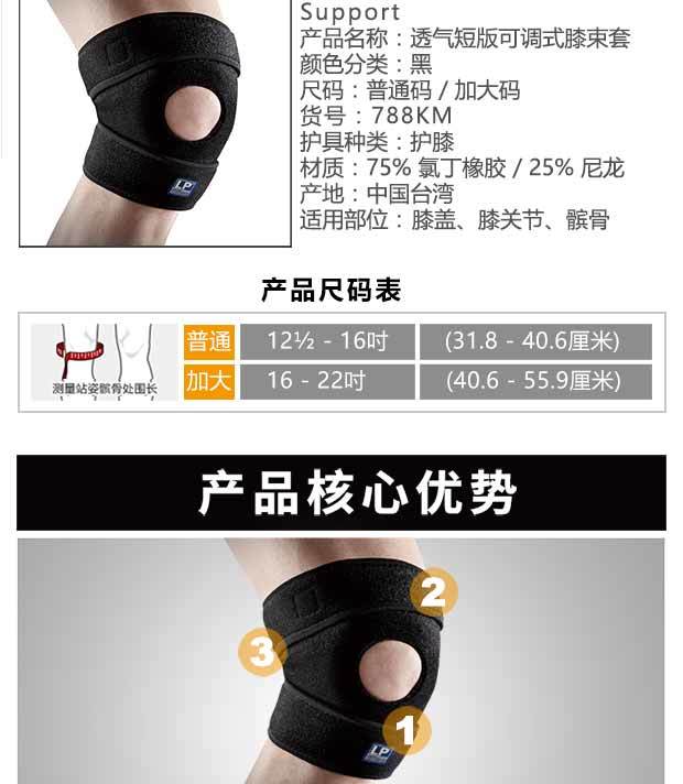 LP788KM 透气短版可调式膝束套