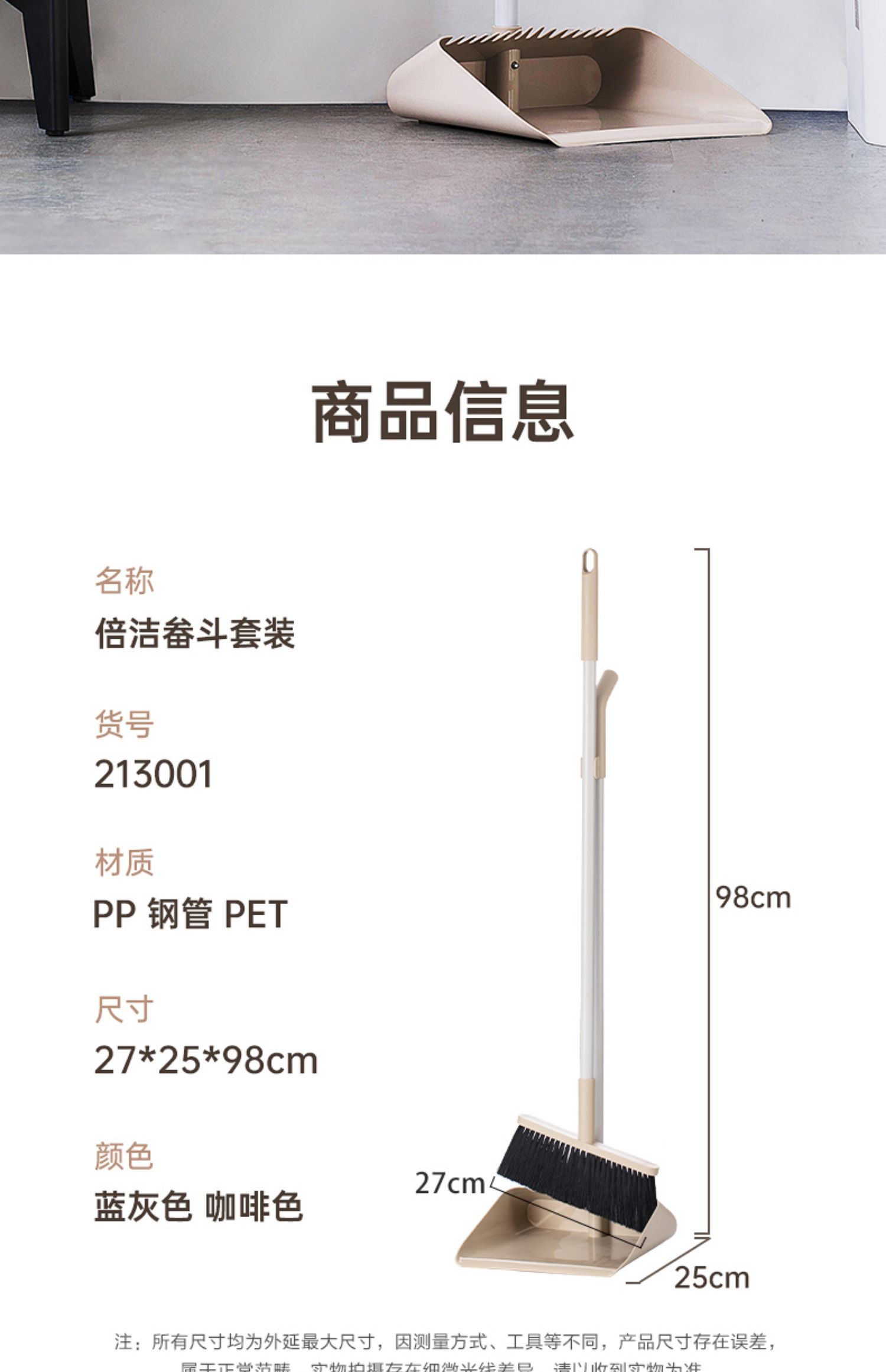 【预售-12月29日配送】茶花倍洁畚斗扫把簸箕套装(颜色随机)/1套(扫把*1把+簸箕*1个)